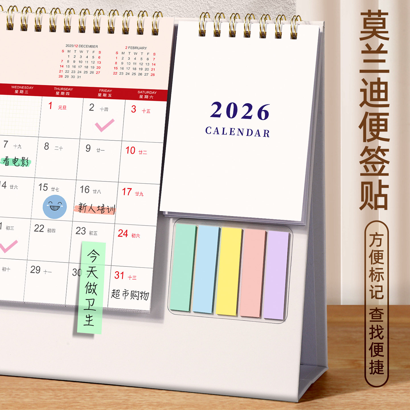 便签台历2026年新款创意简约日历ins风定制桌面摆件商务办公可爱计划本小日历备忘录记事本考研工作打卡月历
