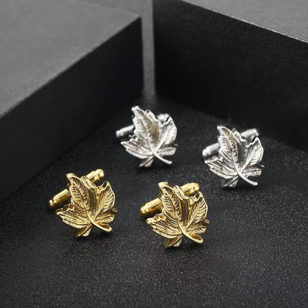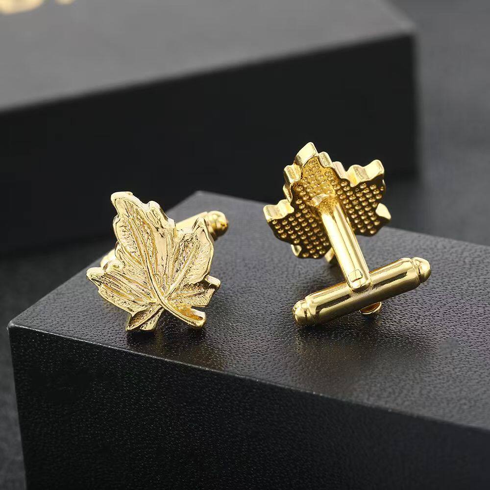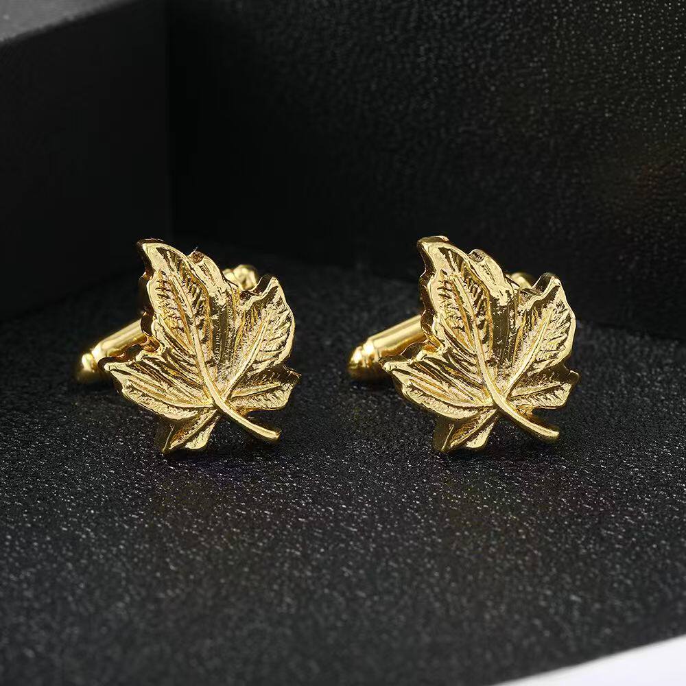 金色叶子法式衬衫袖扣男士袖口扣衬衣轻奢袖钉高档袖扣