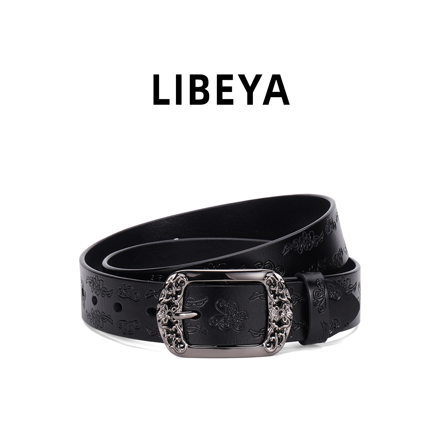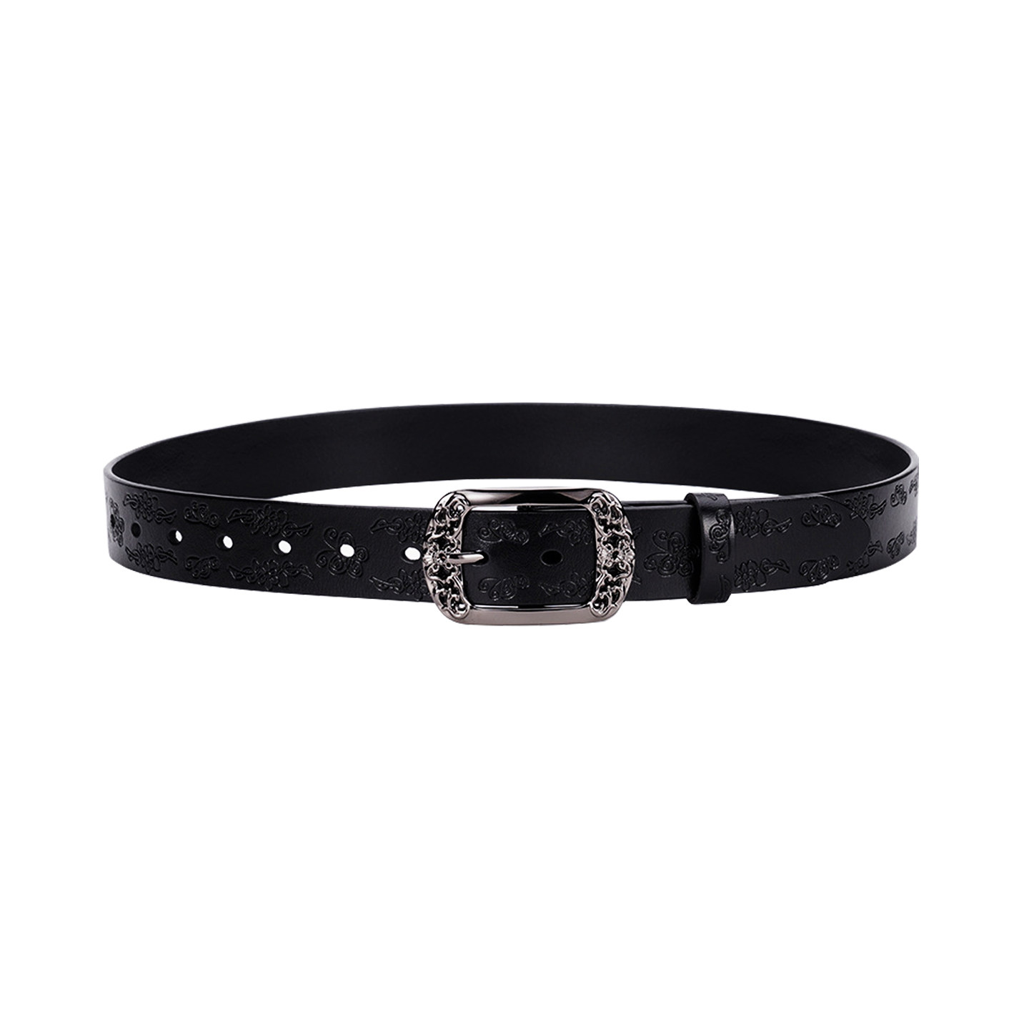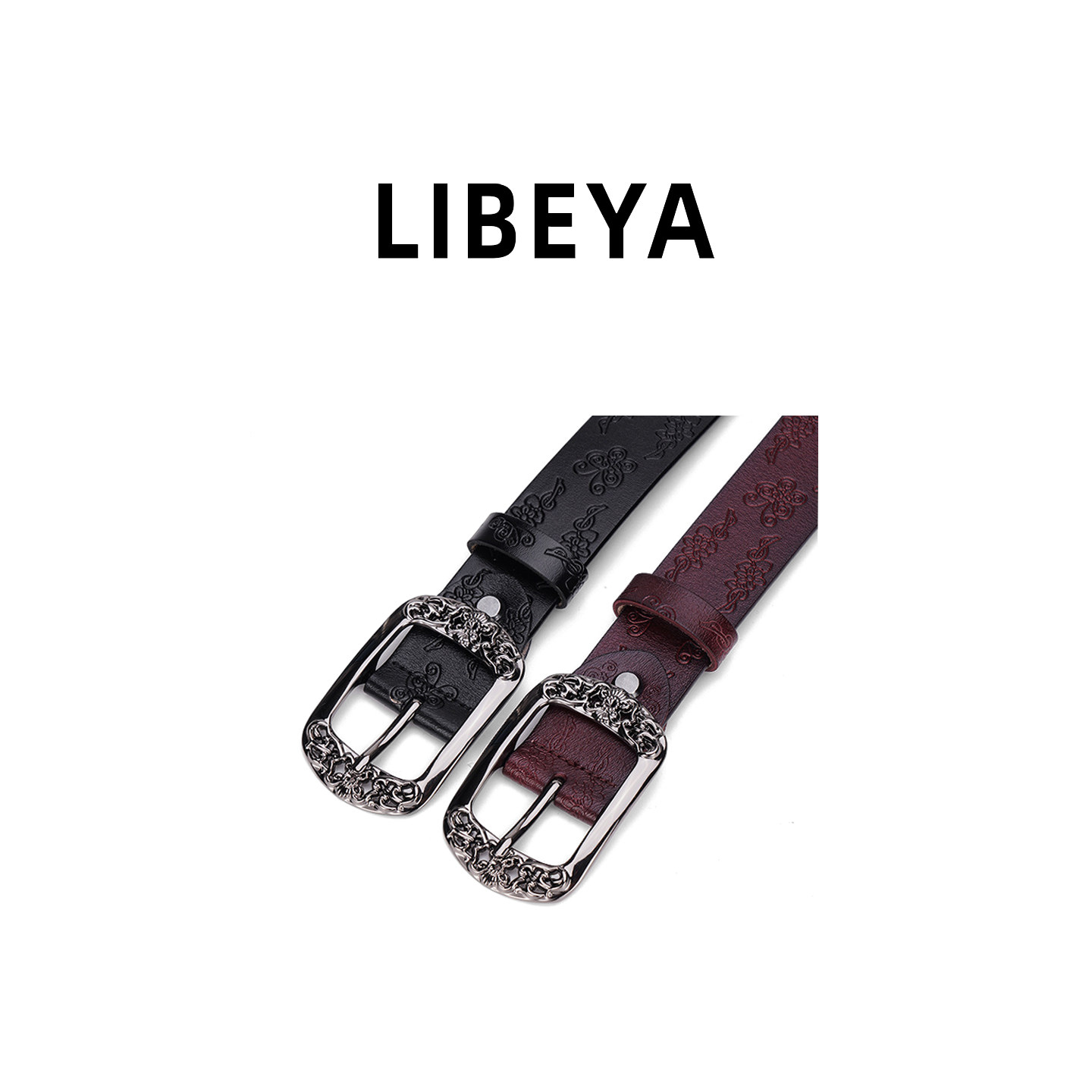 原创复古压花真皮腰带设计感小众学生百搭配饰裤带男女牛皮皮带