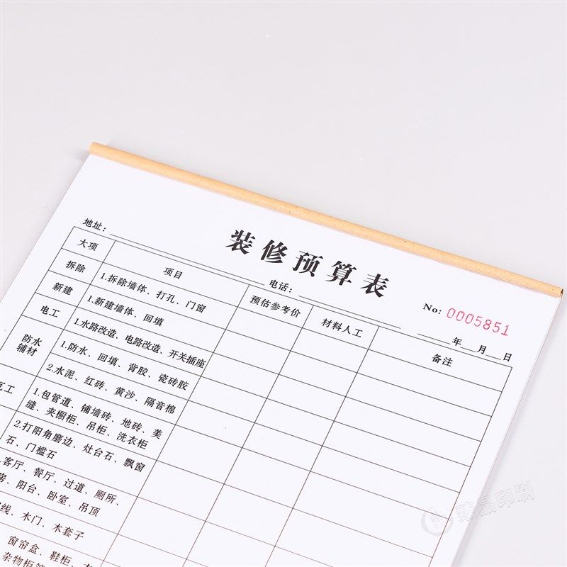 半包全包装修预算报价表定做二联三联家装公司材料价格预估清单a4