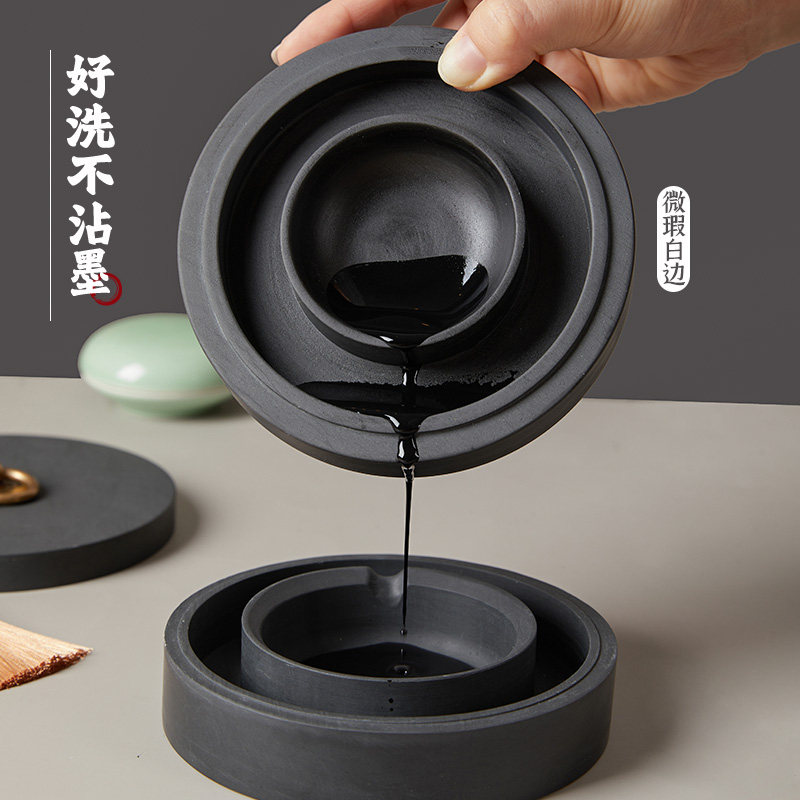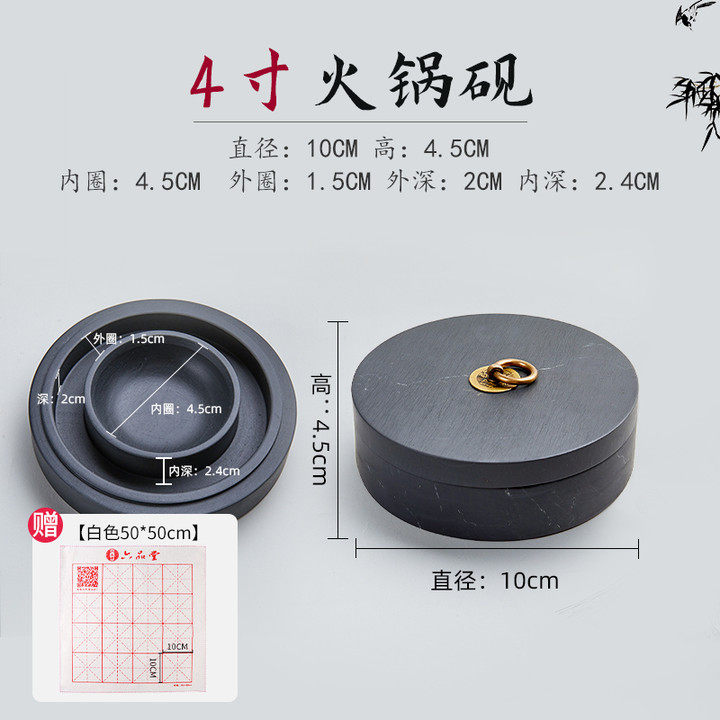 【文房推荐】白边砚台火锅砚书法专用带盖保湿防蒸发研墨黑色石头
