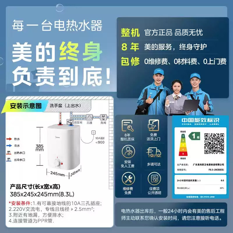 美的小厨宝7.6升热水器厨房家用热水宝台下节能省电小型储水式CB5