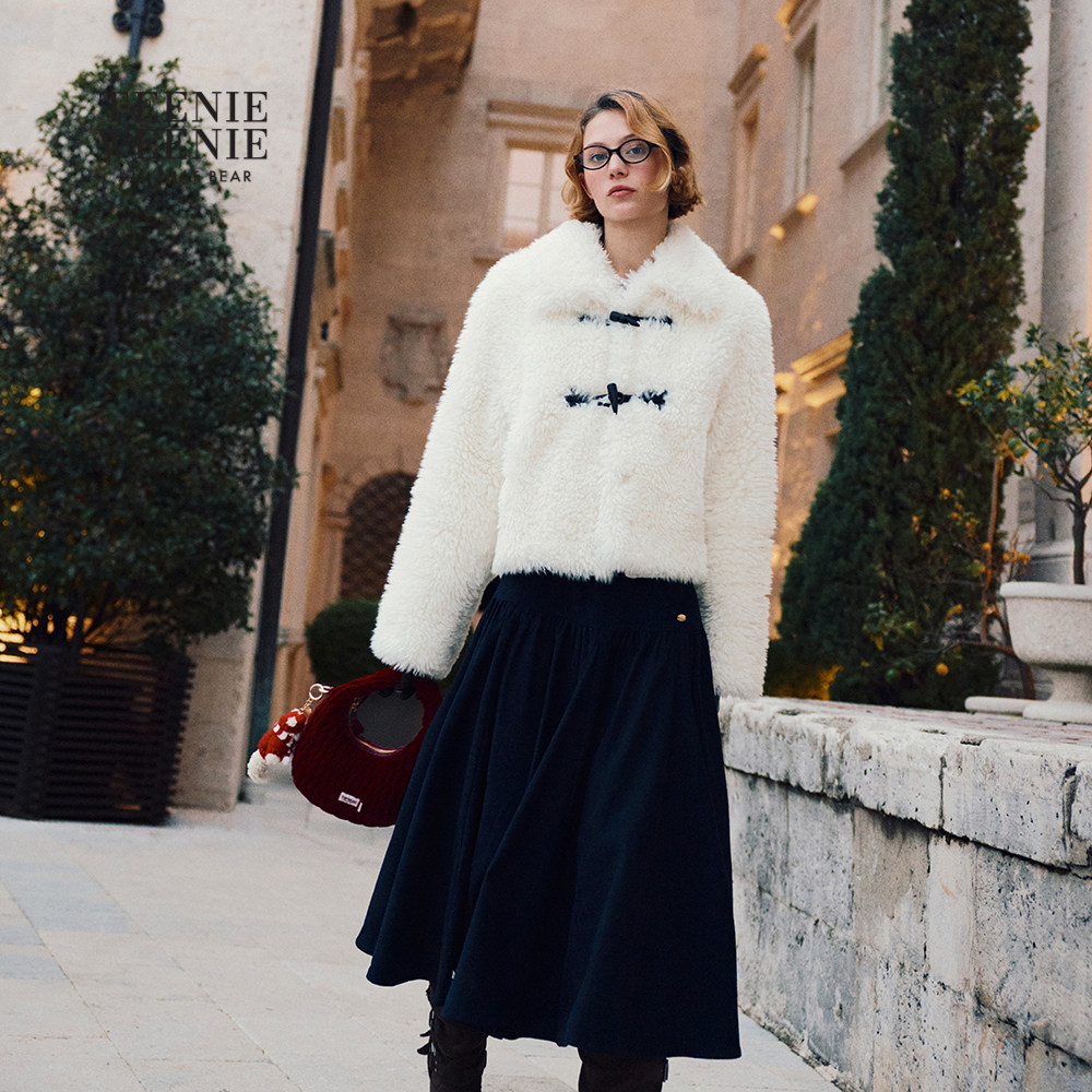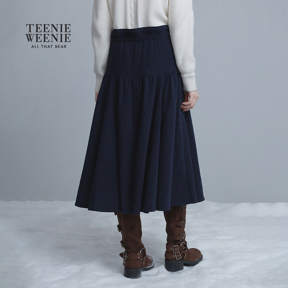 TeenieWeenie小熊女装半身裙25年冬新款时尚高腰气质优雅褶皱长裙