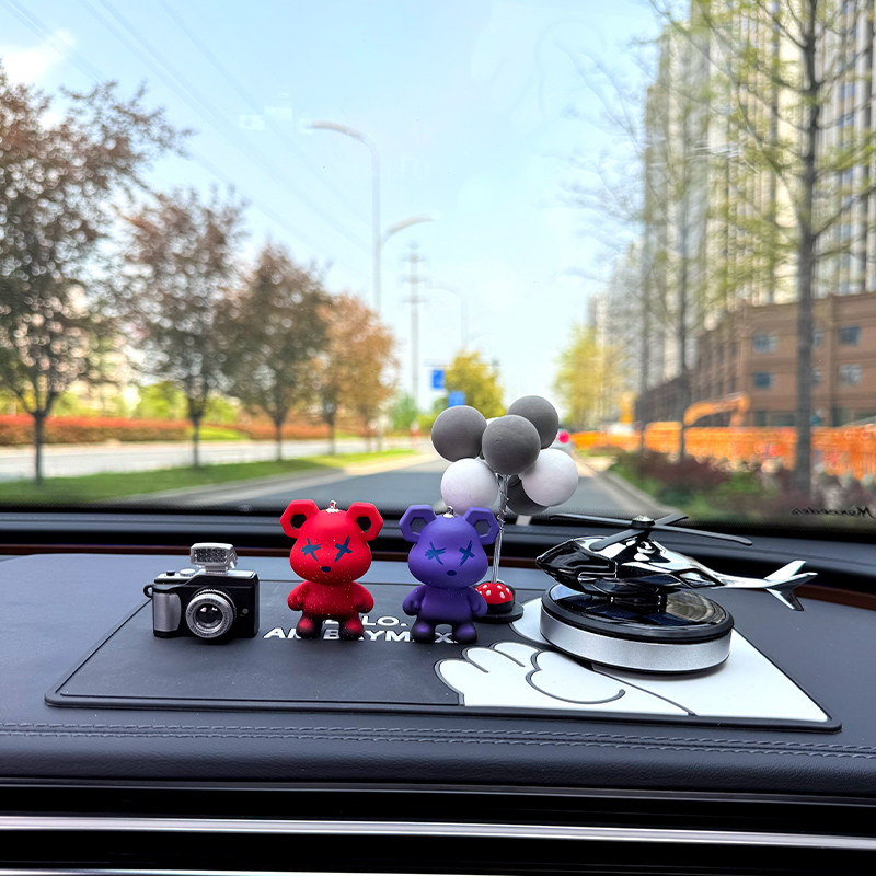 个性暴力熊车载摆件汽车中控台太阳能飞机香薰创意装饰品高档男款