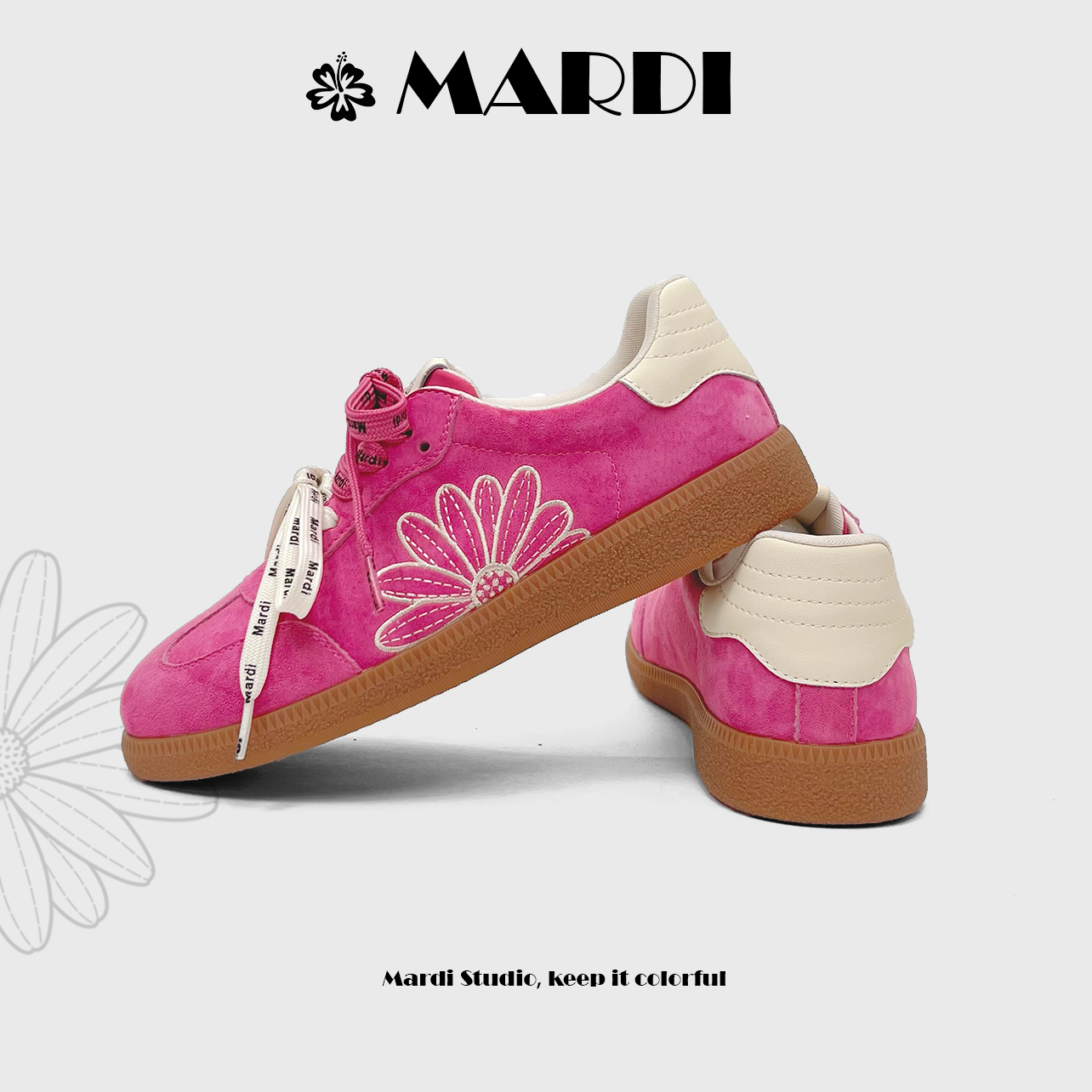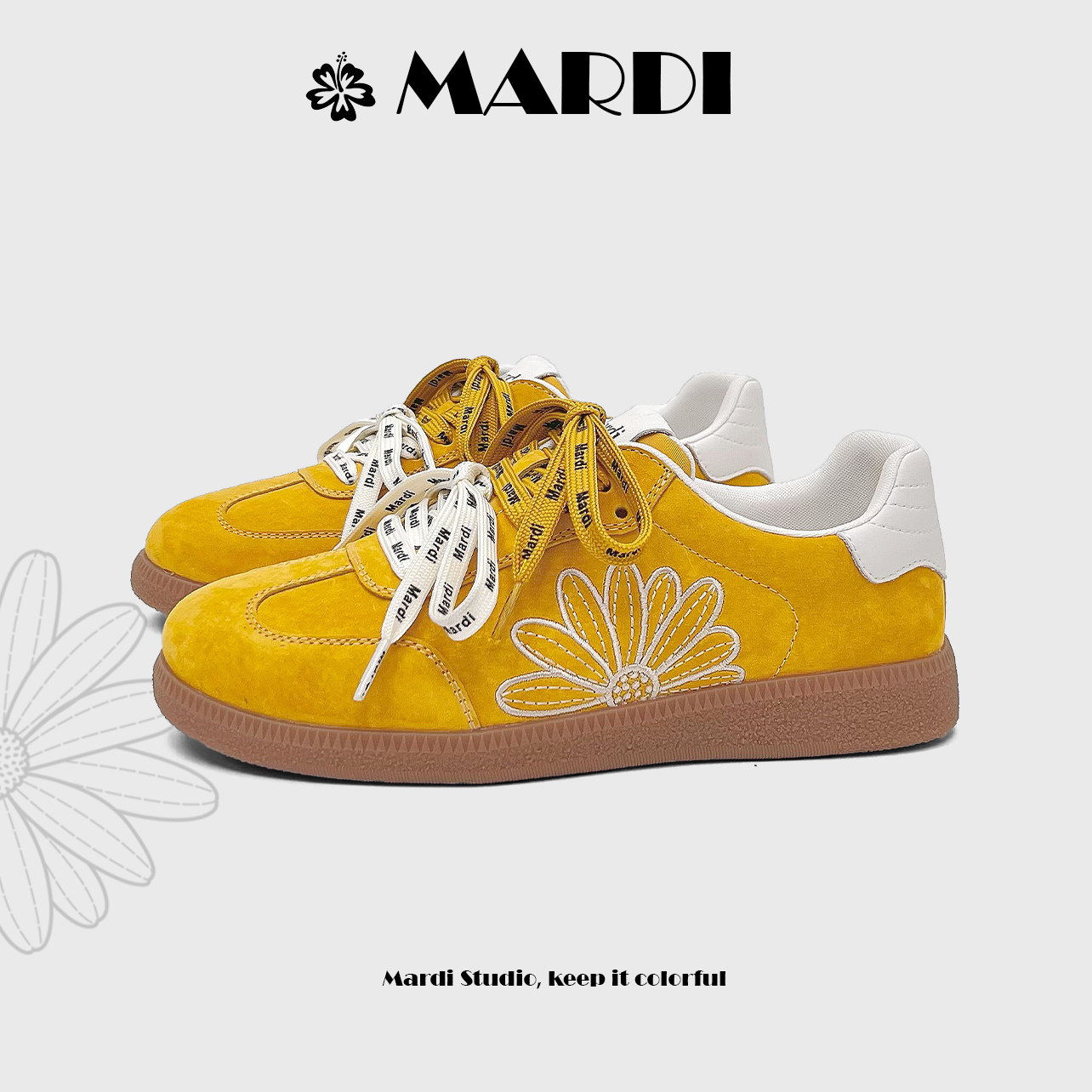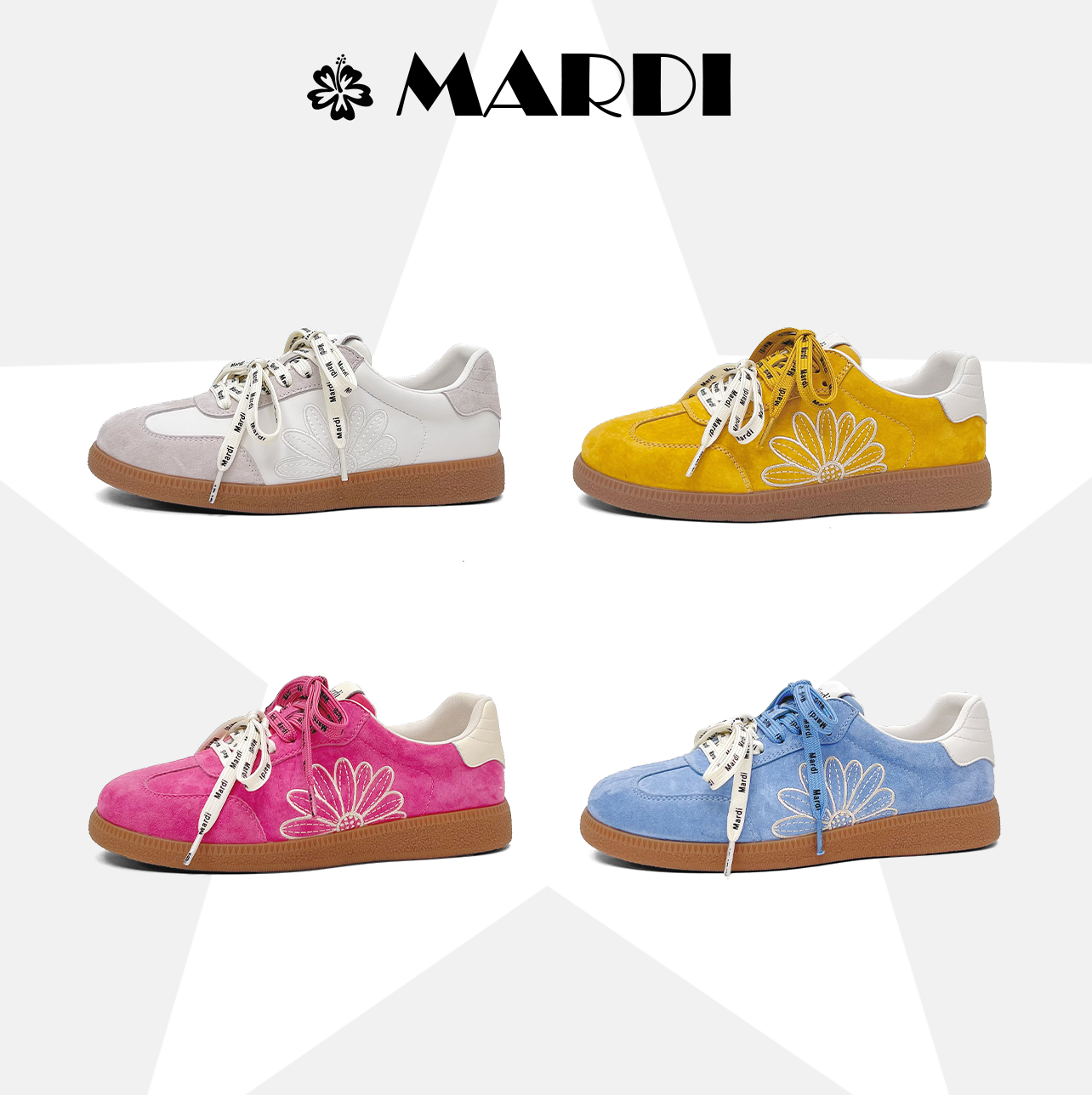 【MARDI官方】小雏菊德训鞋26年春休闲透气防滑系带头层猪皮女鞋