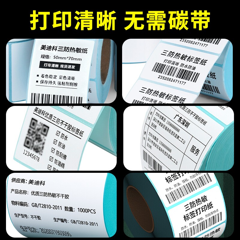 三防热敏标签纸热敏纸条码纸不干胶打印纸三防贴纸50*30 20 40 60 70 80 100*100mm物流E邮宝面单奶茶店吊牌