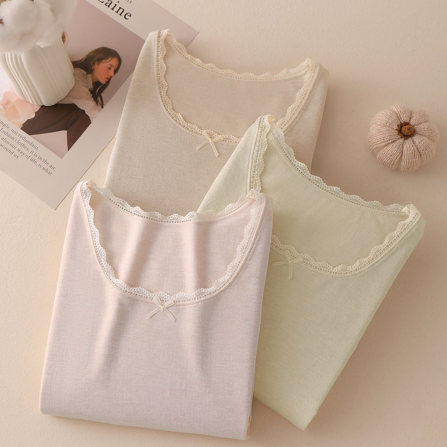 蕾丝圆领女士95%纯棉保暖内衣套装束身美体秋衣秋裤棉毛衫打底
