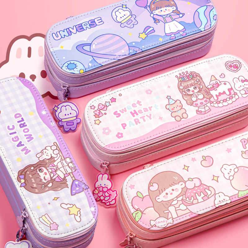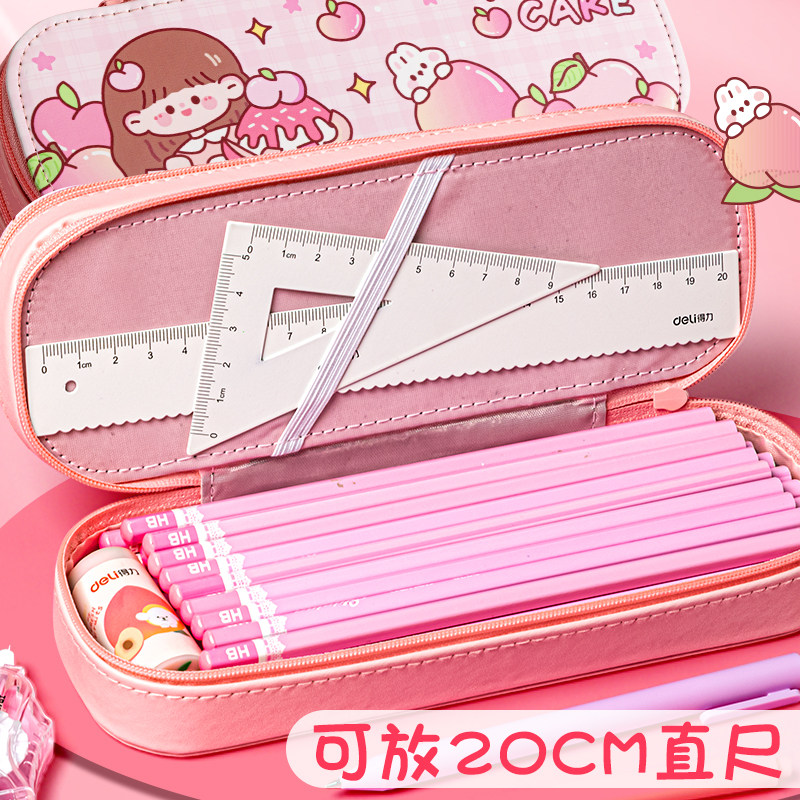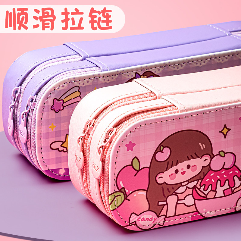 高颜值双层笔袋男孩小学生大容量文具袋ins简约日系2023年新款流行多功能多层儿童一年级帆布女孩收纳铅笔盒