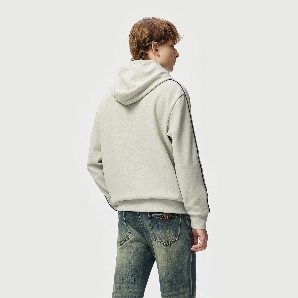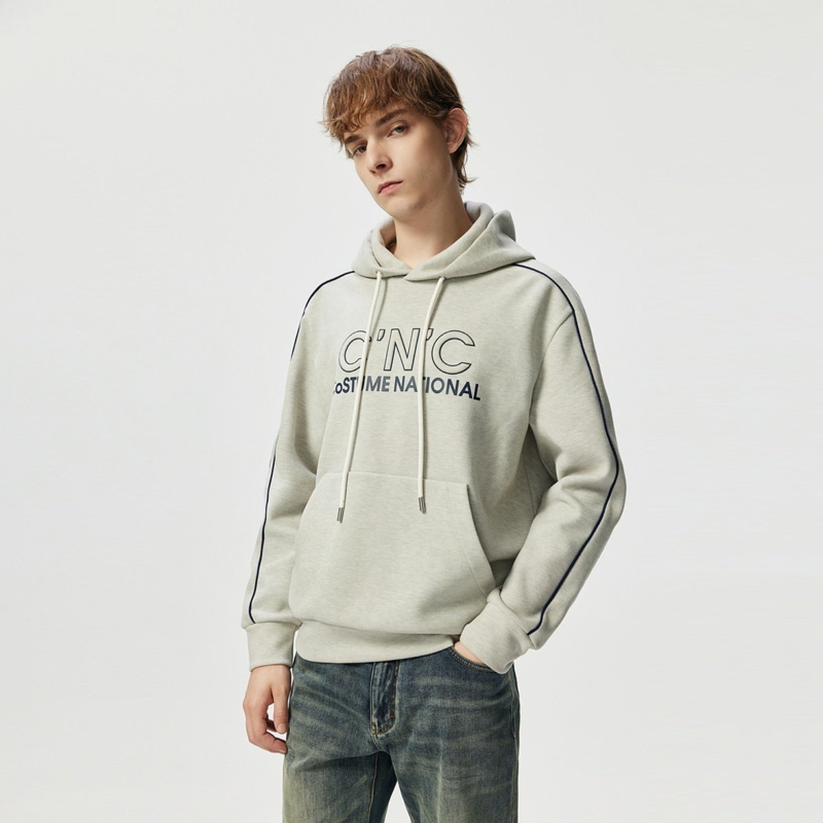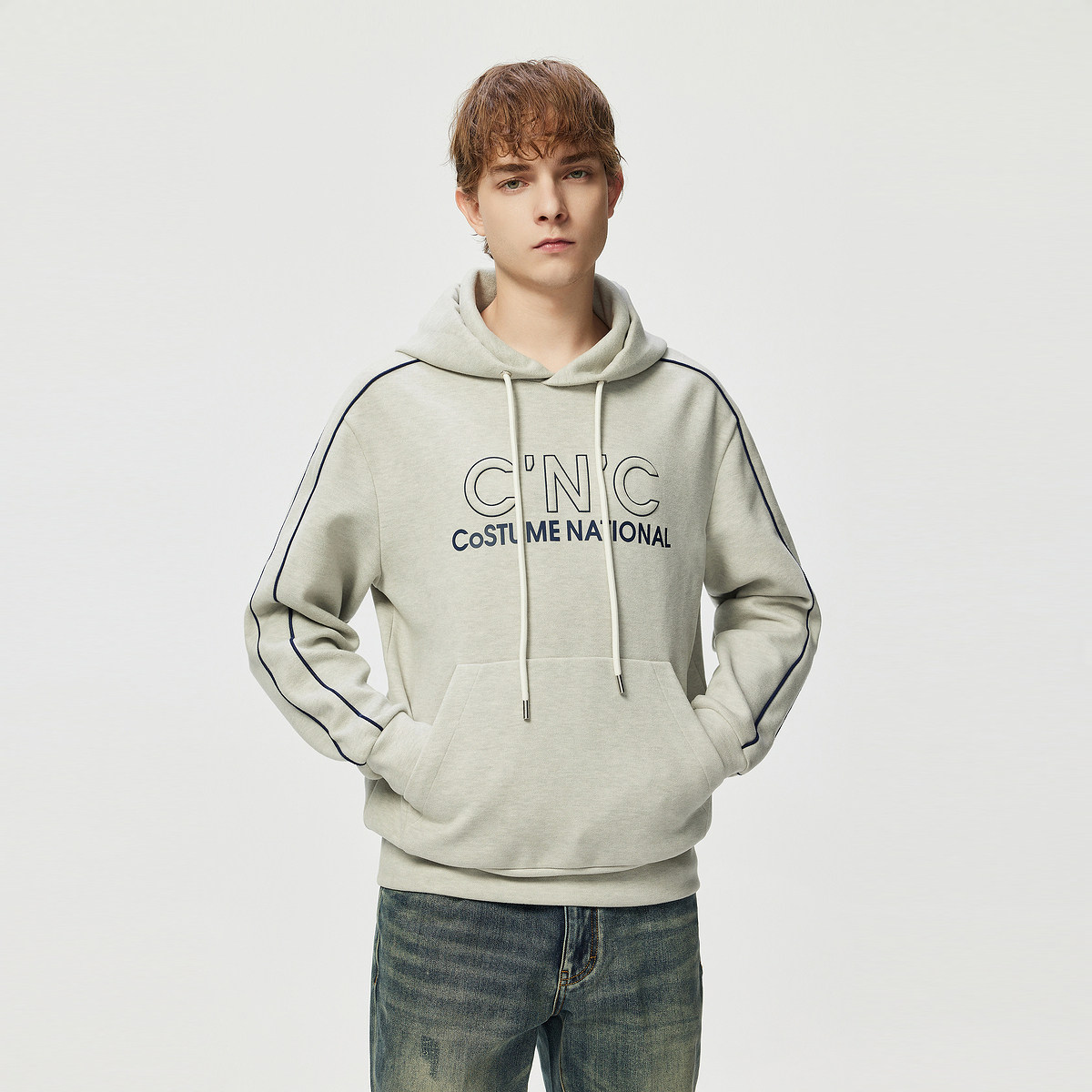 CNC男装奥莱简约抽绳连帽卫衣男秋冬新款logo印花轻奢休闲上衣