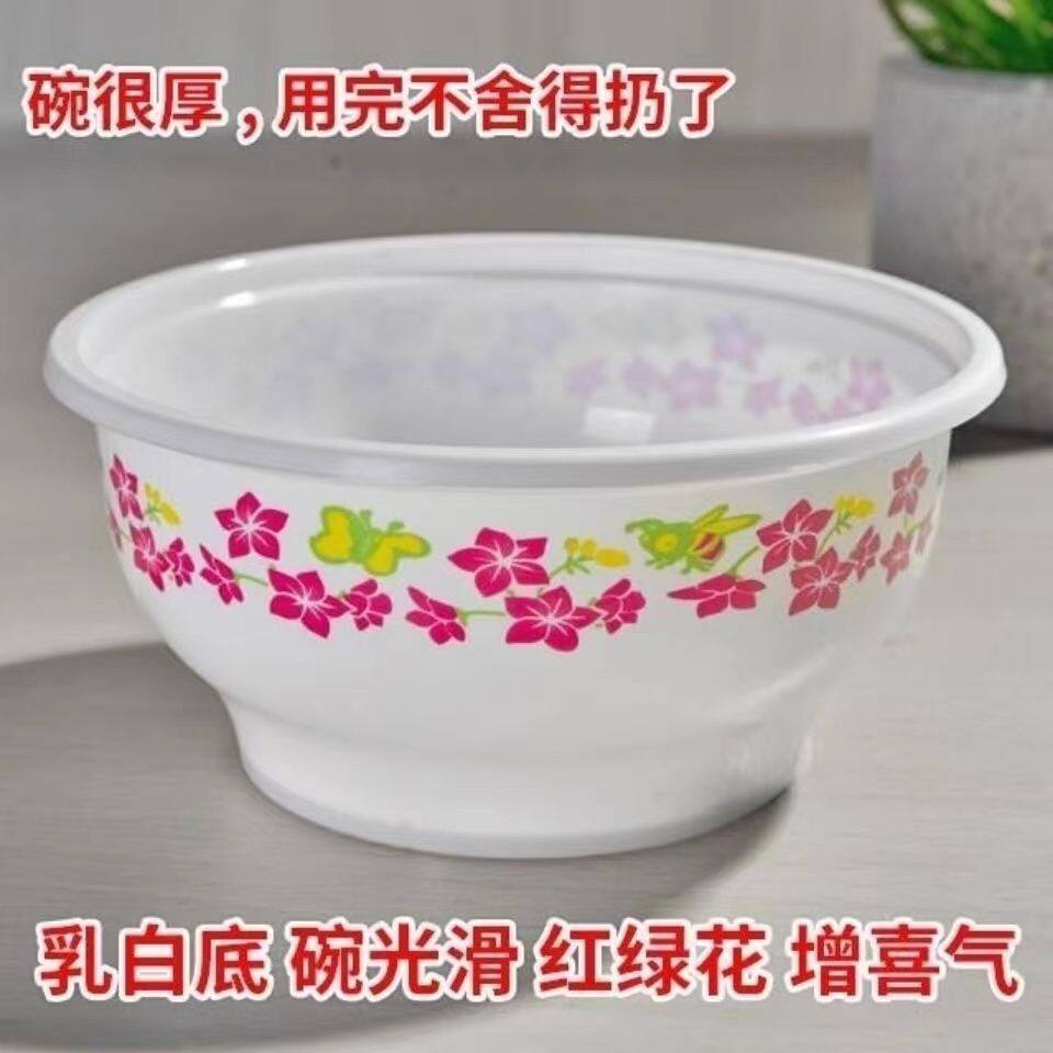 一次性碗圆形塑料餐花碗打包盒碗筷杯婚庆加厚塑料碗饭盒外卖碗