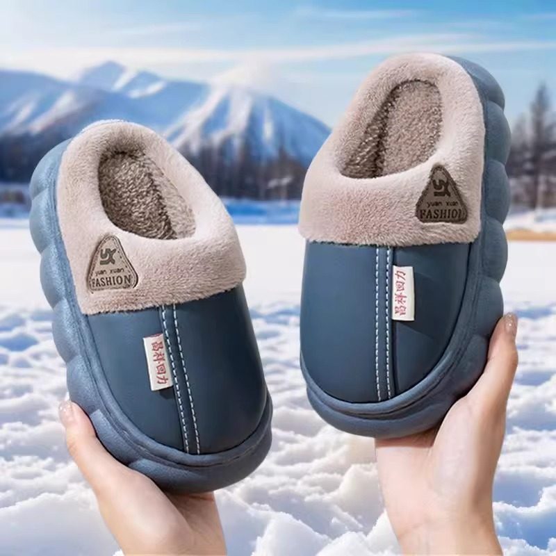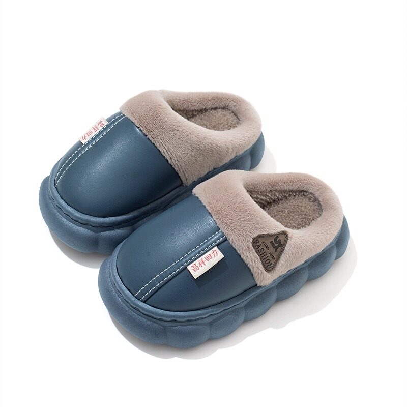 儿童棉拖鞋冬季皮面防水防滑男女童亲子室内保暖小孩包跟棉鞋加绒