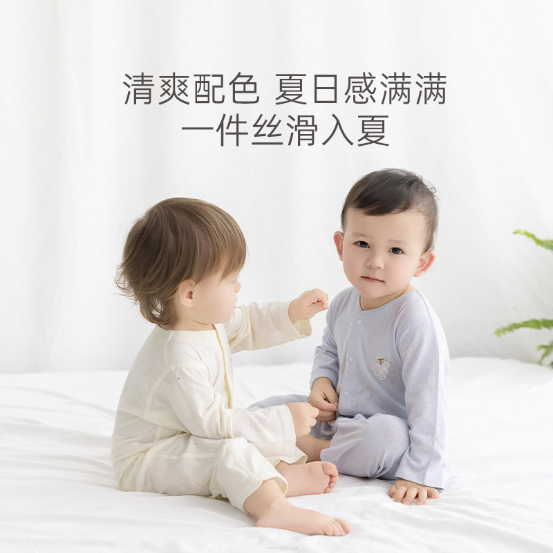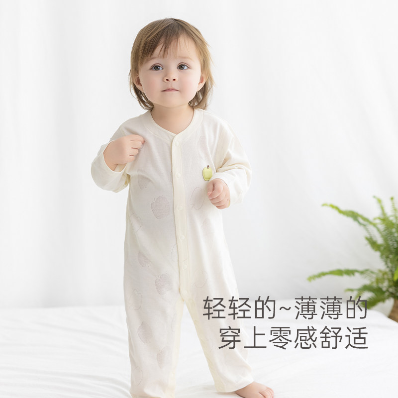 木生棉婴儿长袖连体衣夏季薄款宝宝透气哈衣竹纤维空调服爬服睡衣