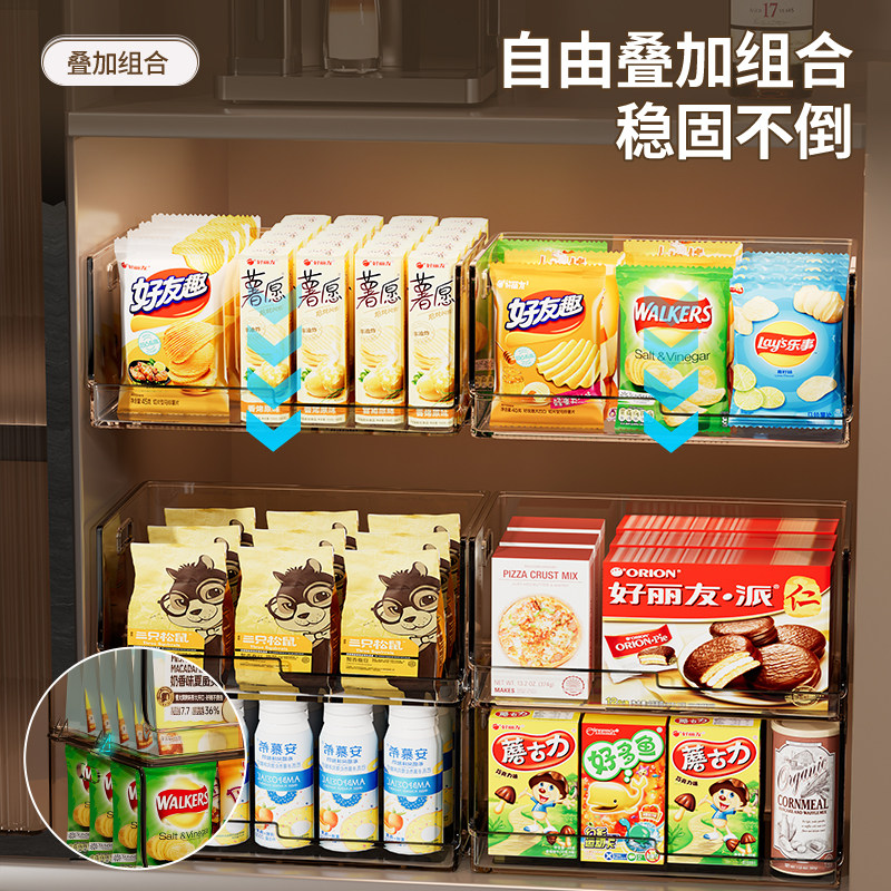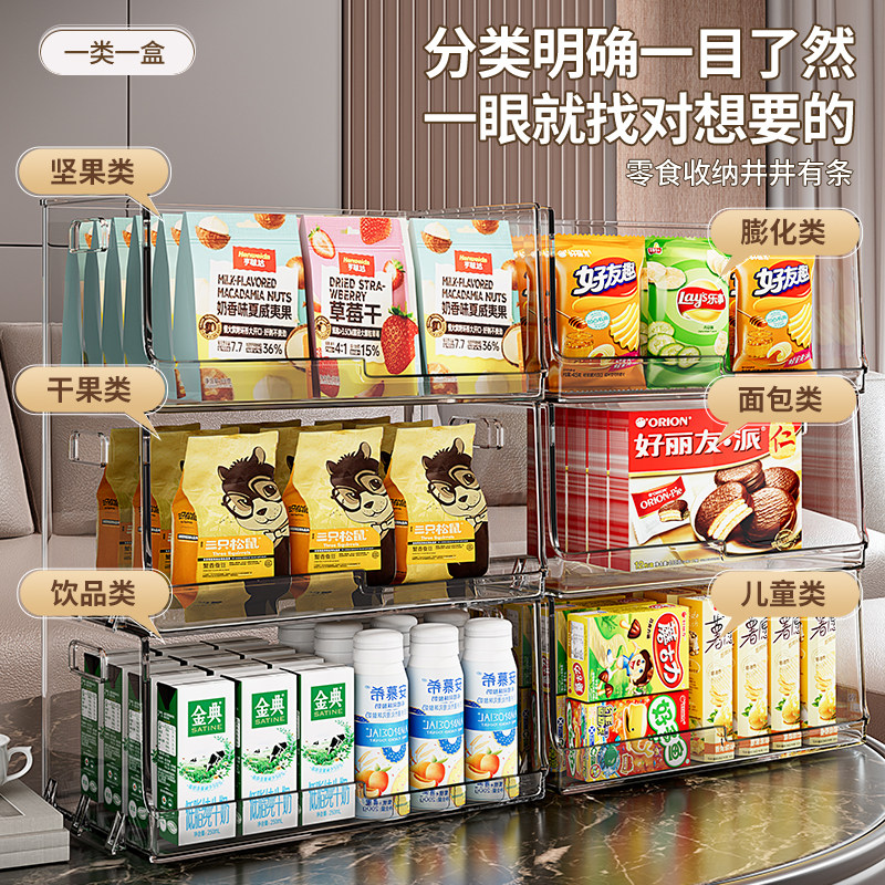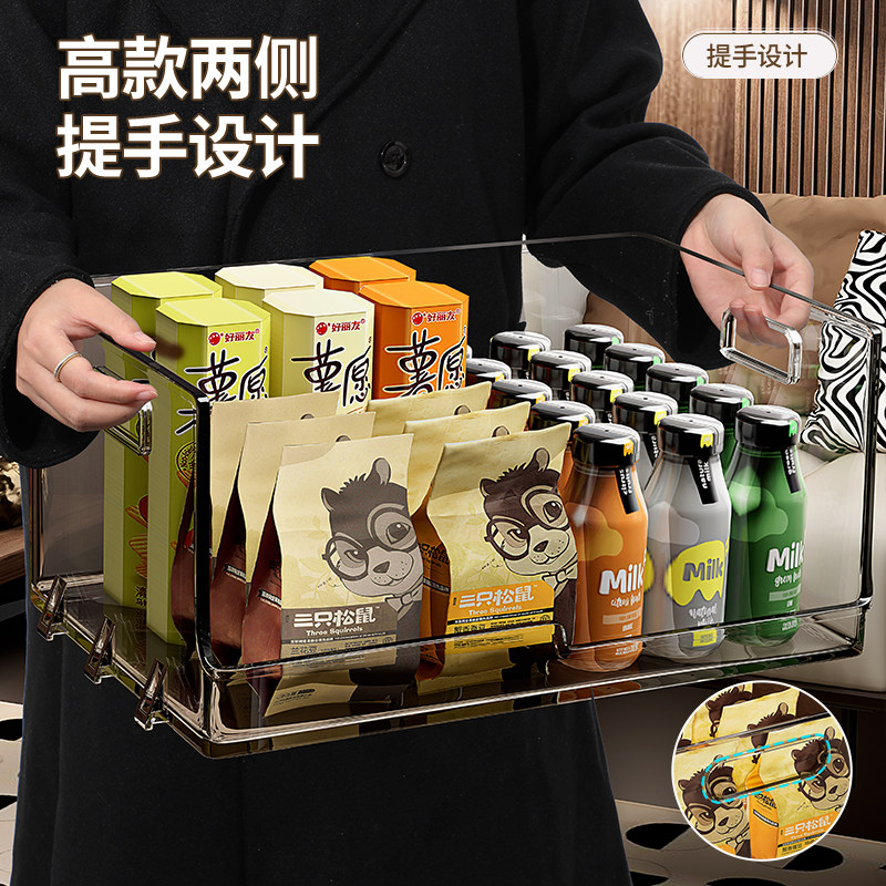 橱柜收纳盒整理杂物零食透明置物筐桌面透明亚克力长方形储物盒子