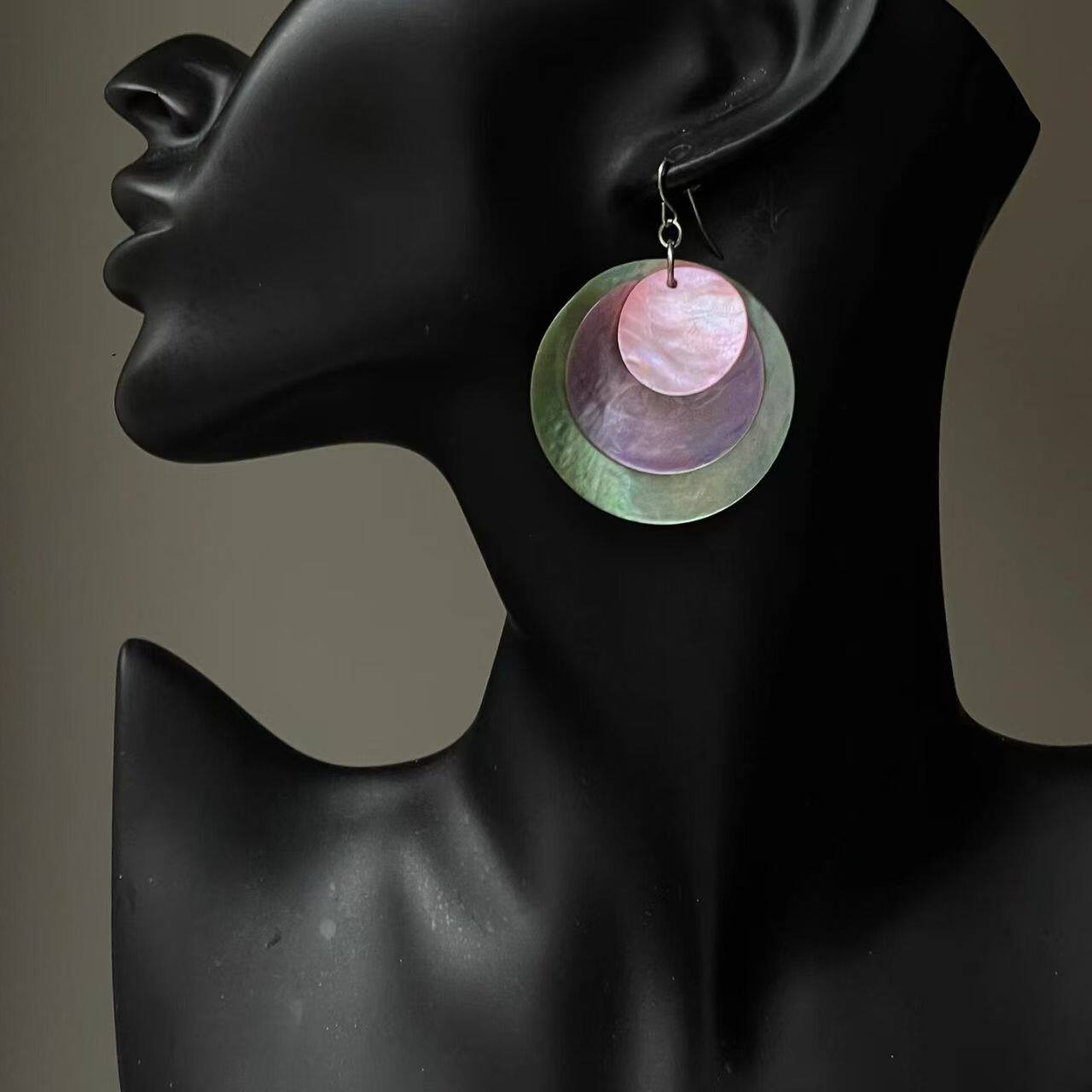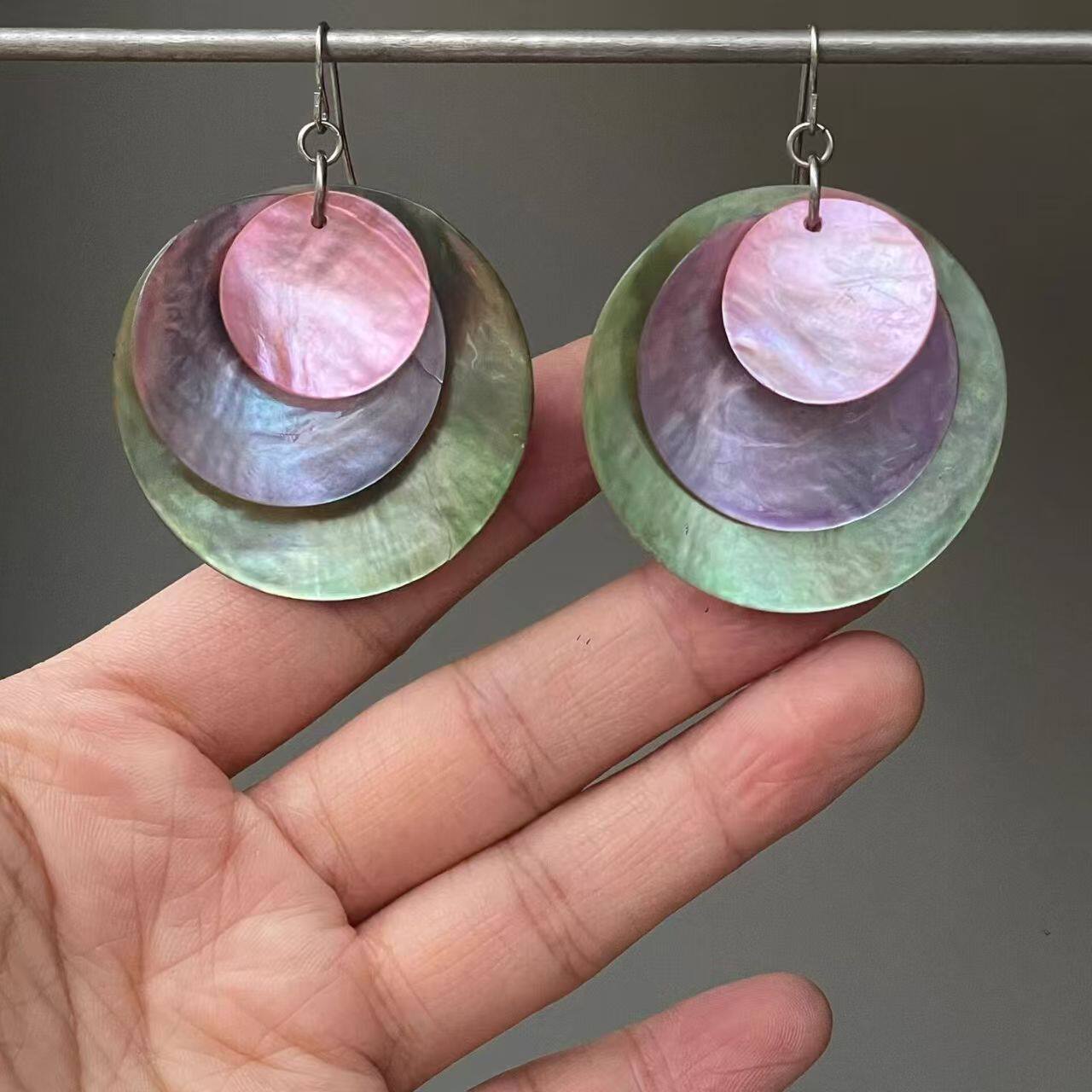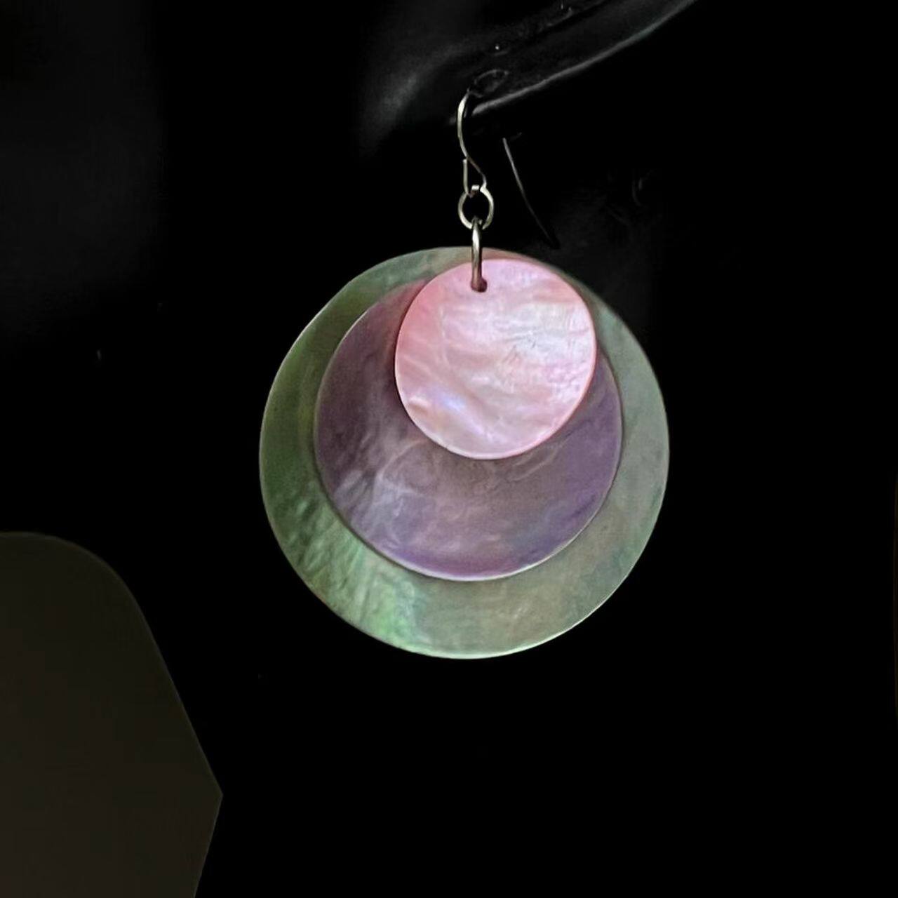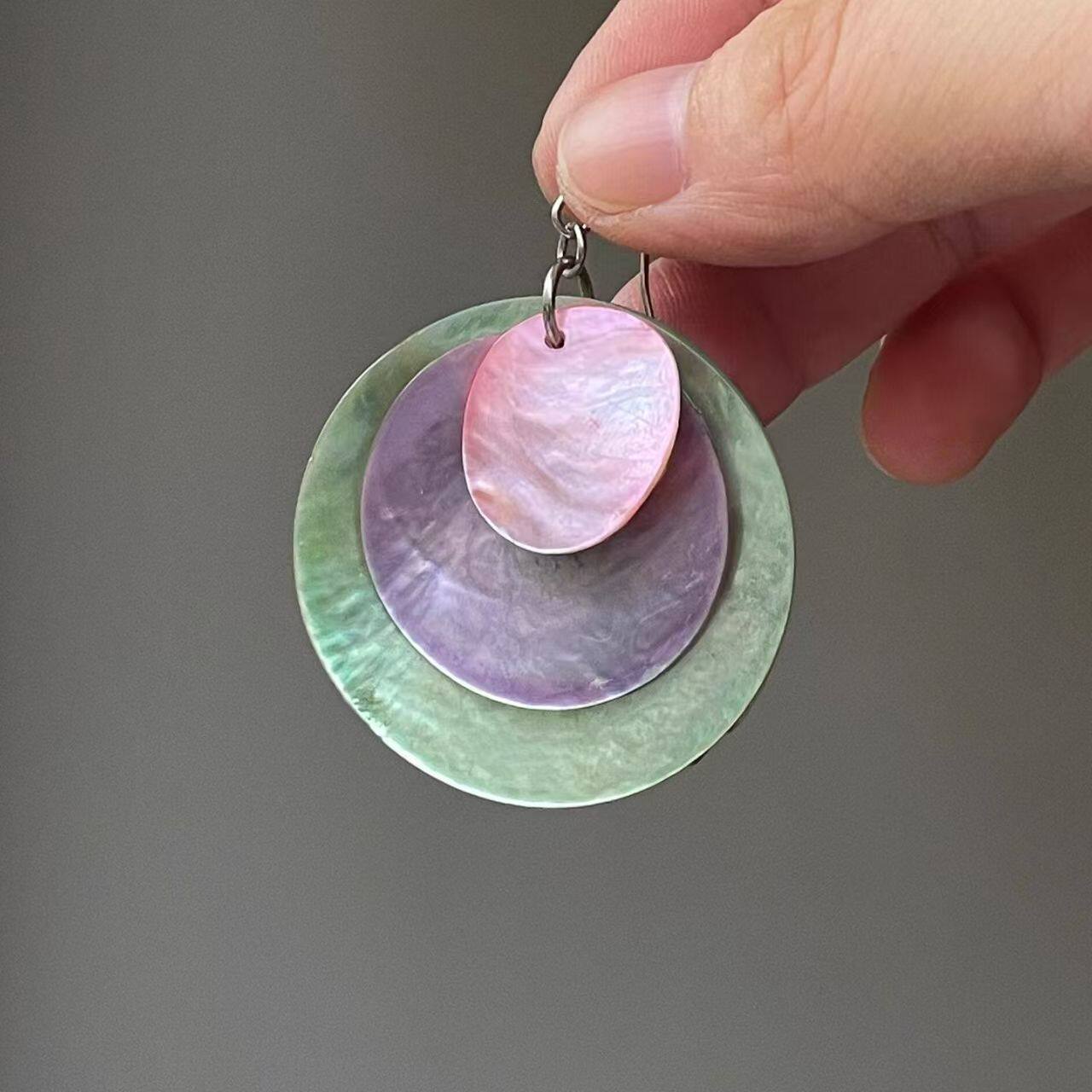 【紫霞绮梦】超独特渐变紫色圆片贝壳耳环夸张夏天海边拍照耳饰女