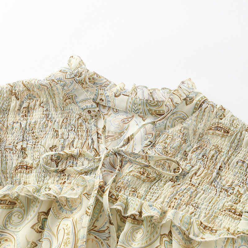 COCOBELLA多层蕾丝雪纺衫女秋赫本风木耳荷叶边长袖衬衫LC7028-2