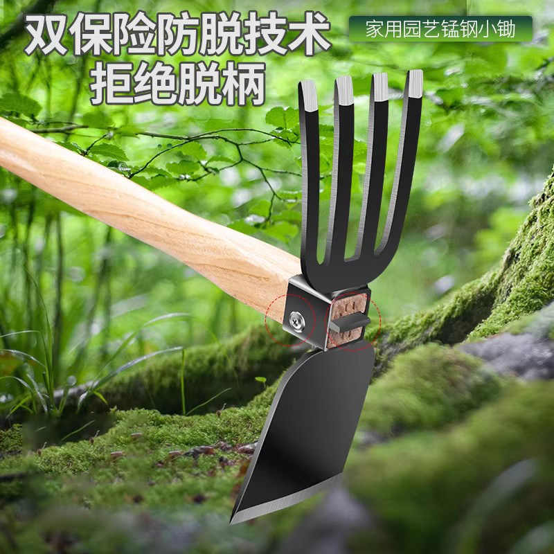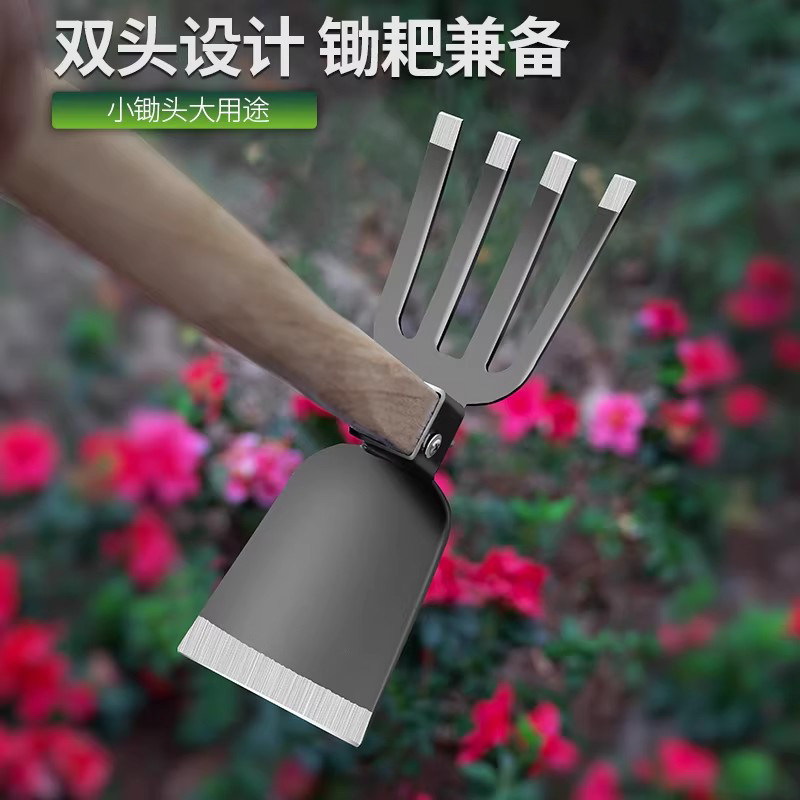 黑钢木柄园艺锄喻家用铲草松土农用工具种菜种花小锄头两用小锄头