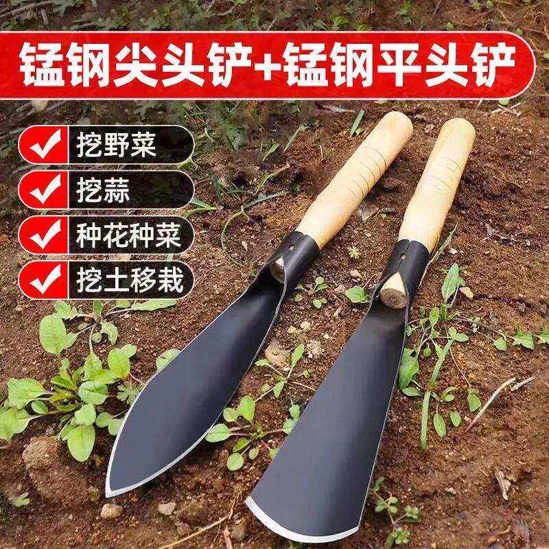 园艺挖土小铲子户外神器锰钢种花赶海家用不锈钢工具挖野菜铁铲