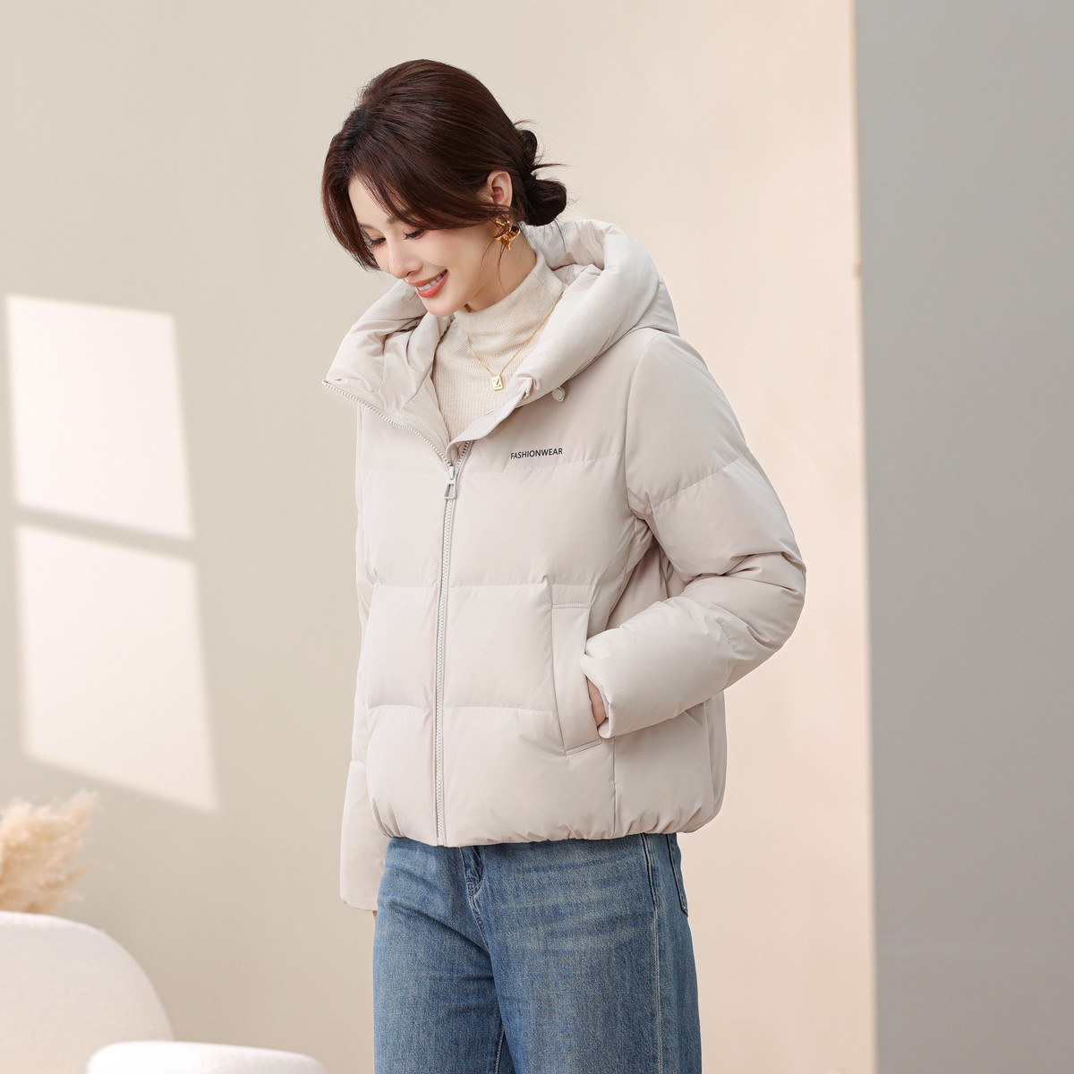 【鞠婧祎同款】鸭鸭2025年冬新款百搭短款女士纯色立领羽绒服外套