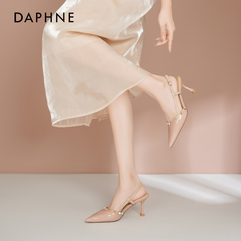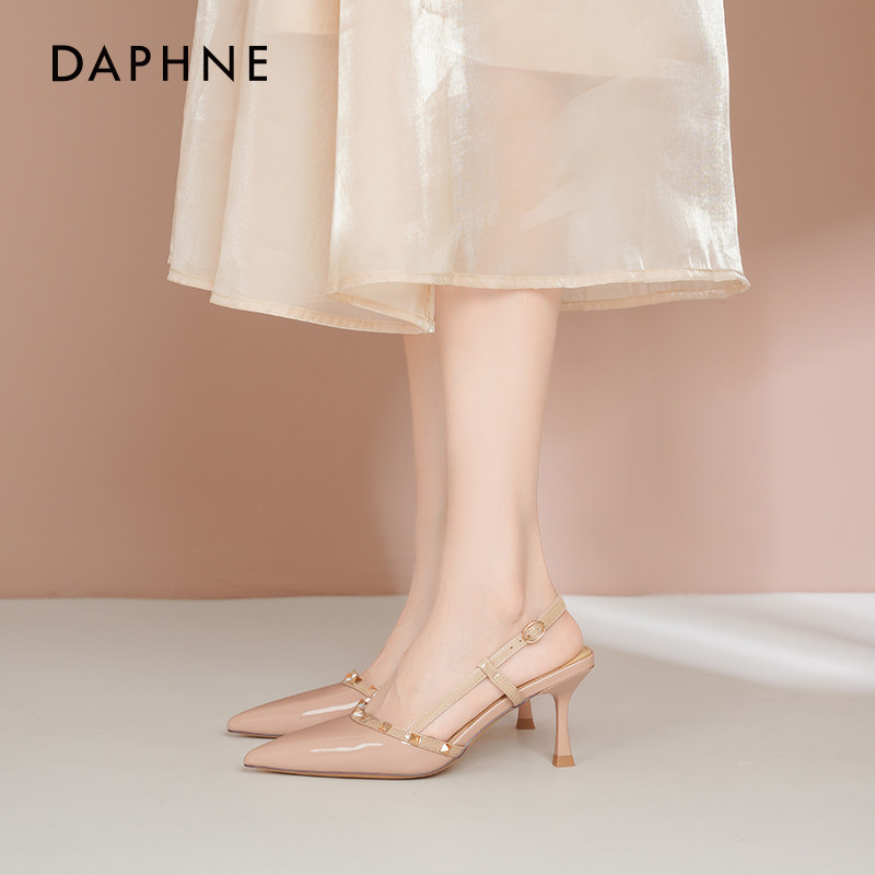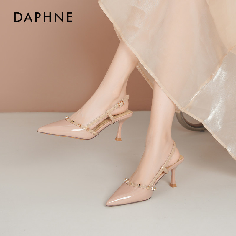 达芙妮铆钉高跟鞋女2025新款夏季法式单鞋女尖头不累脚裸色凉鞋女