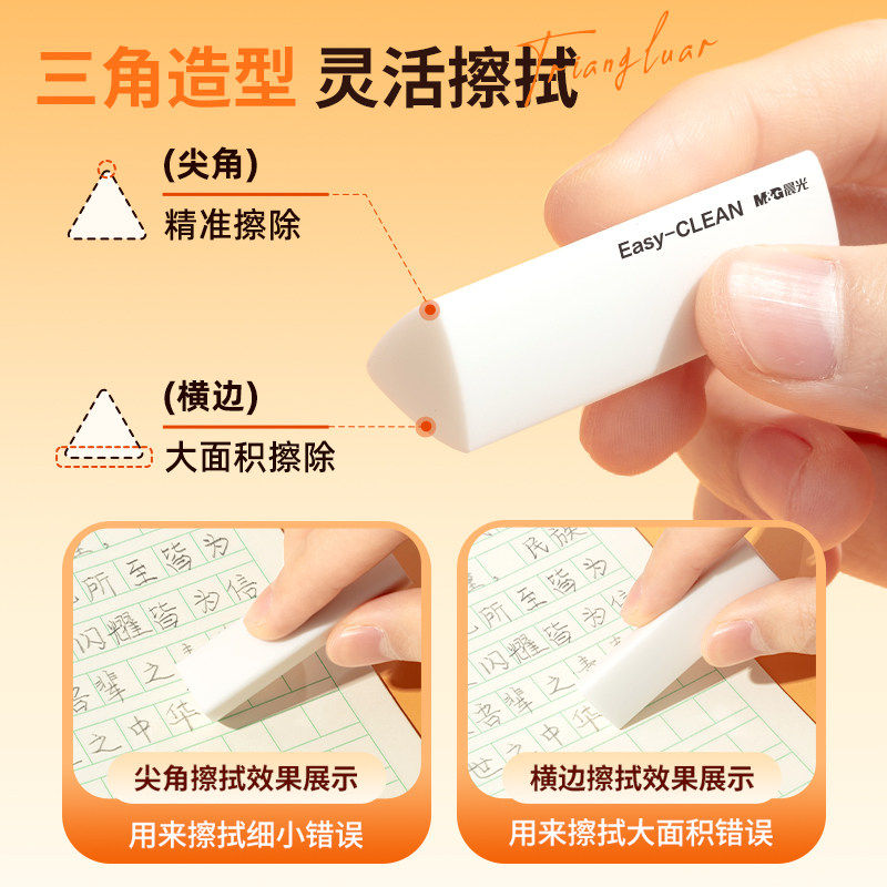 晨光三角橡皮擦小学生专用无屑超干净擦字成线不易留痕像皮桶装收纳不易丢儿童安全防丢橡皮素描美术生橡皮擦