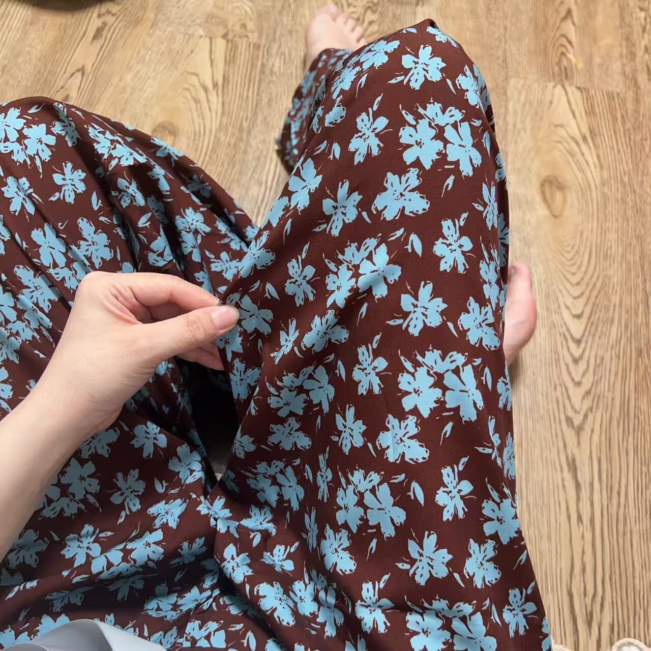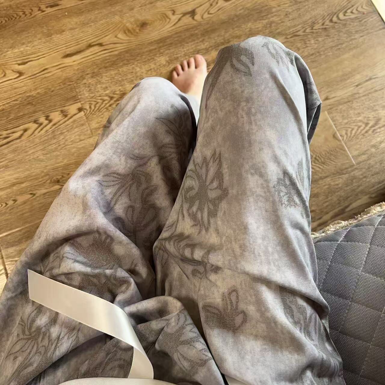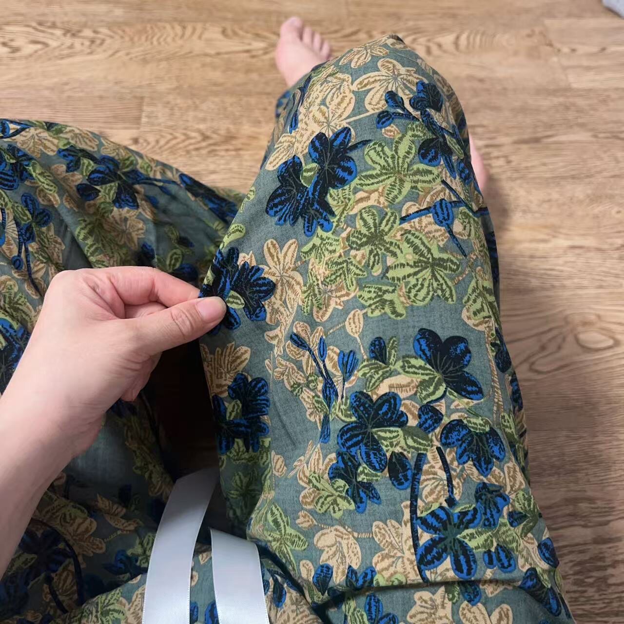 棉绸睡裤女夏薄款棉绸九分阔腿裤印花居家可外穿人造棉裤子防蚊裤