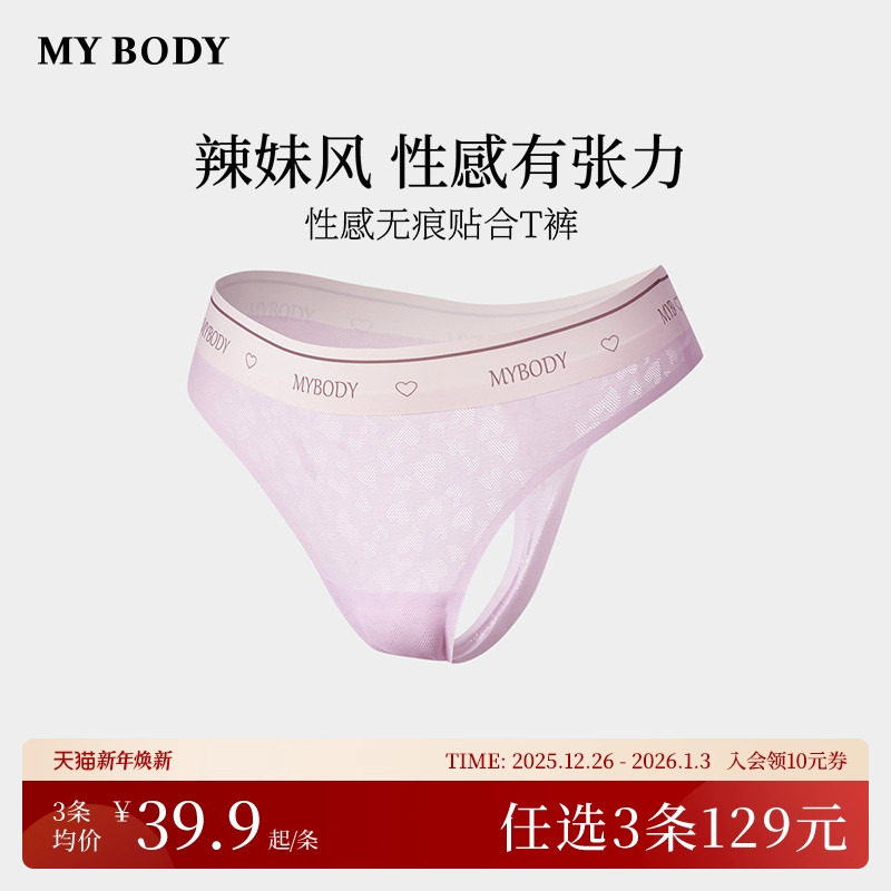 3件129|商场同款MYBODY内裤女莫代尔提花性感无痕T裤低腰丁字裤