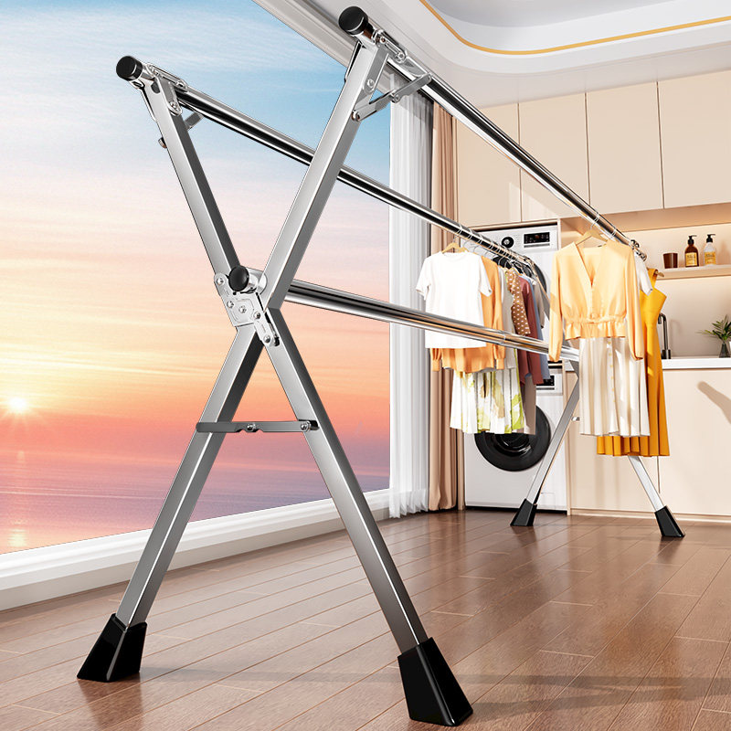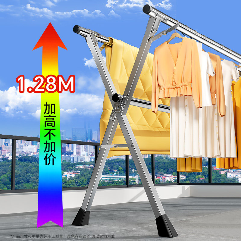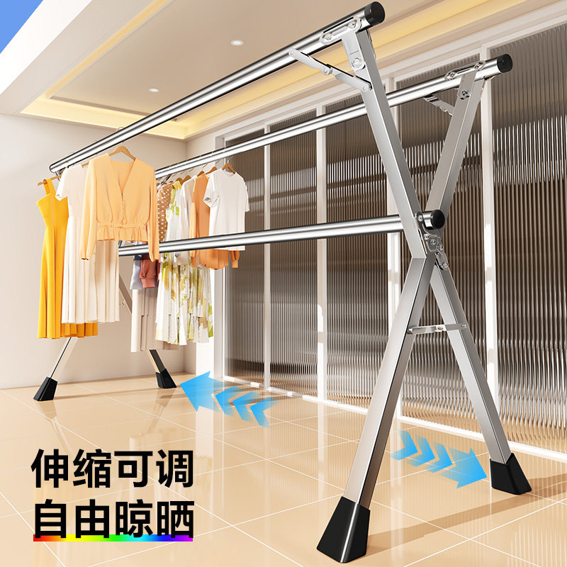 晾衣架落地折叠室内家用阳台卧室不锈钢室外凉伸缩杆式晒被子神器
