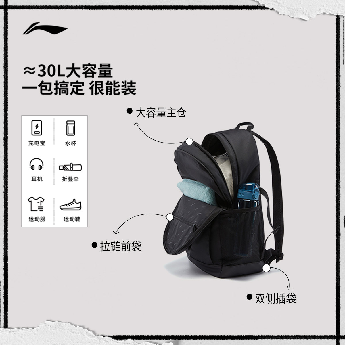 李宁反伍BADFIVE双肩包男包女包2025新款背包学生书包运动包