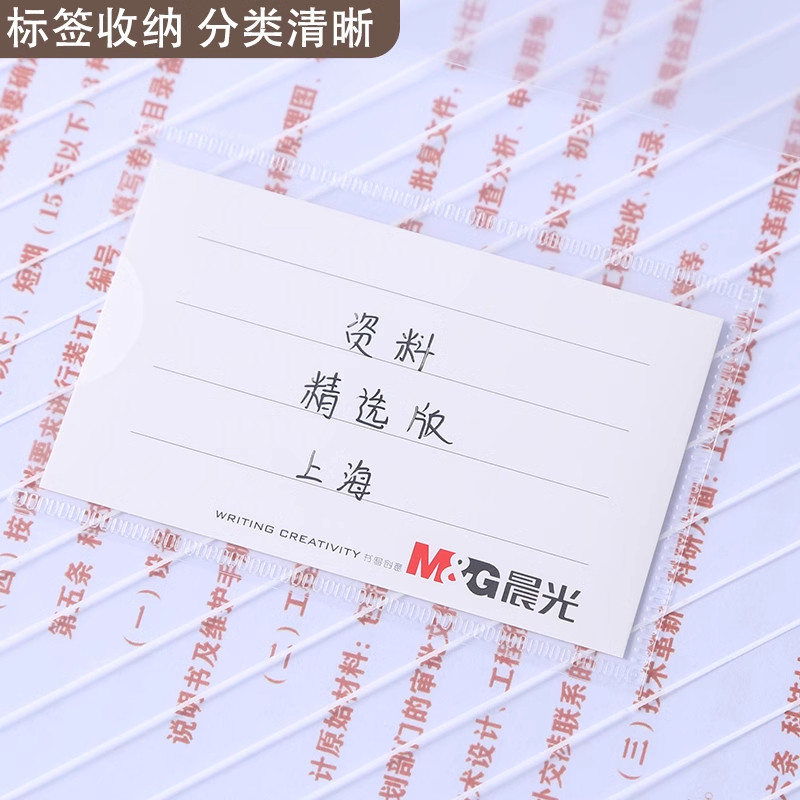 晨光A4标签文件袋透明斜纹塑料加厚大容量按扣试卷收纳袋学生用档案资料袋pp纽扣文件夹公文包小学生办公用品