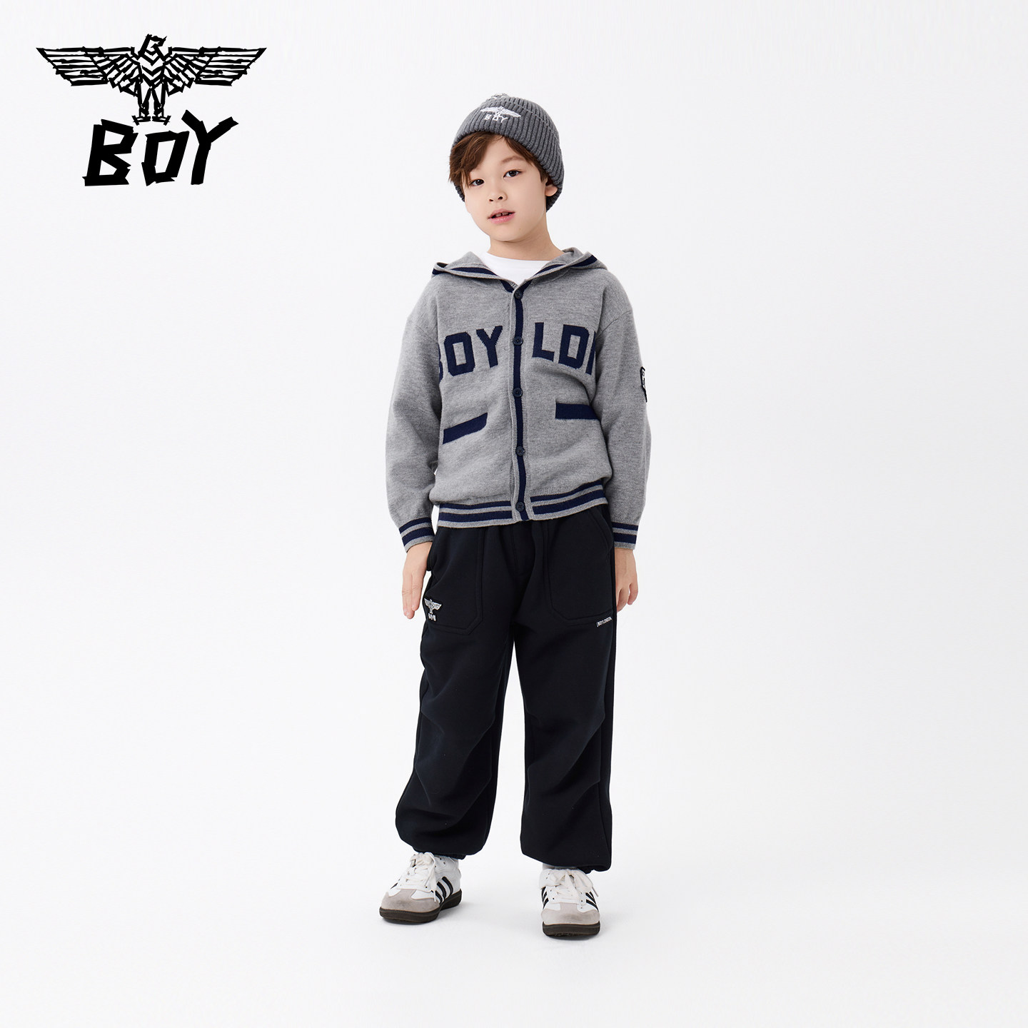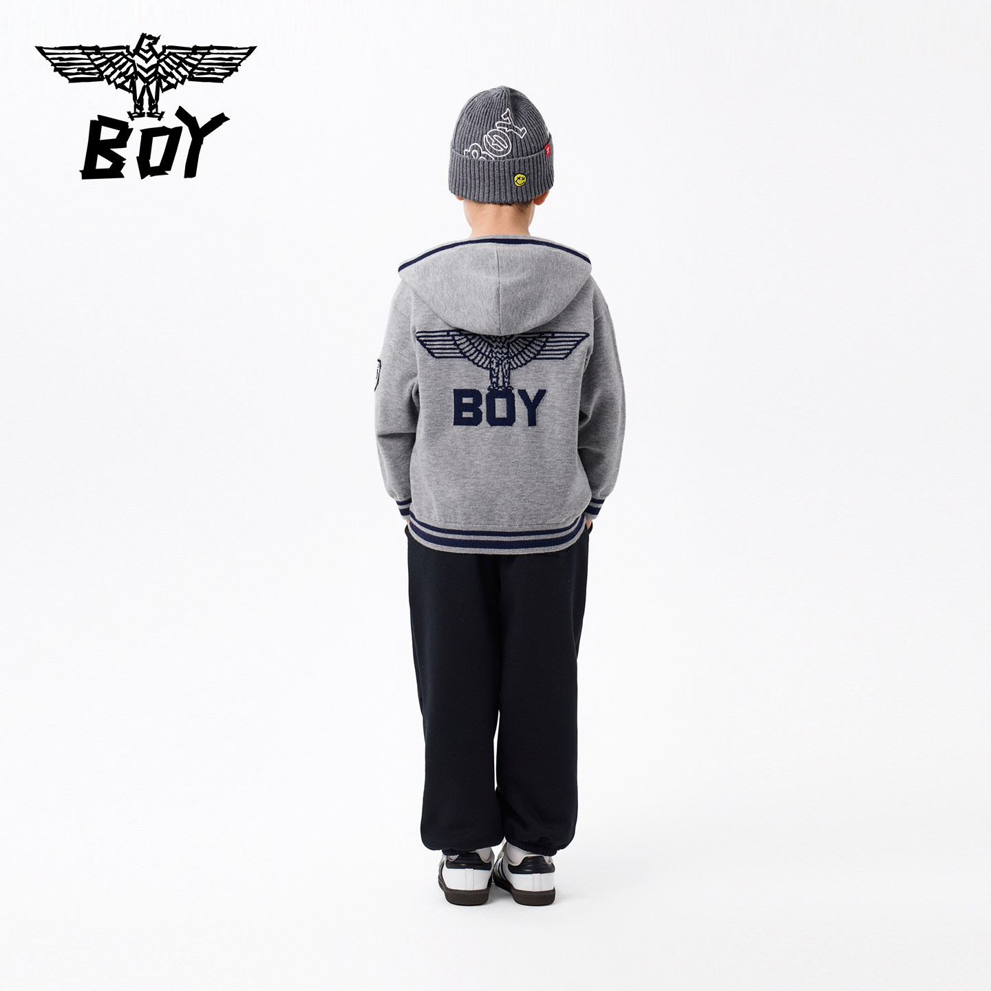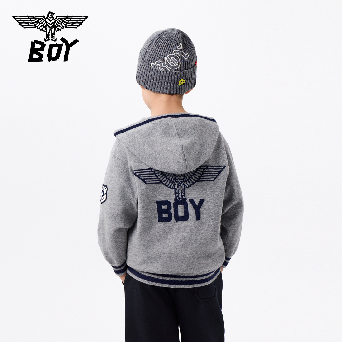 BOY童装 25秋新款毛衣儿童连帽开衫毛衫外套男女童中大童亲子装