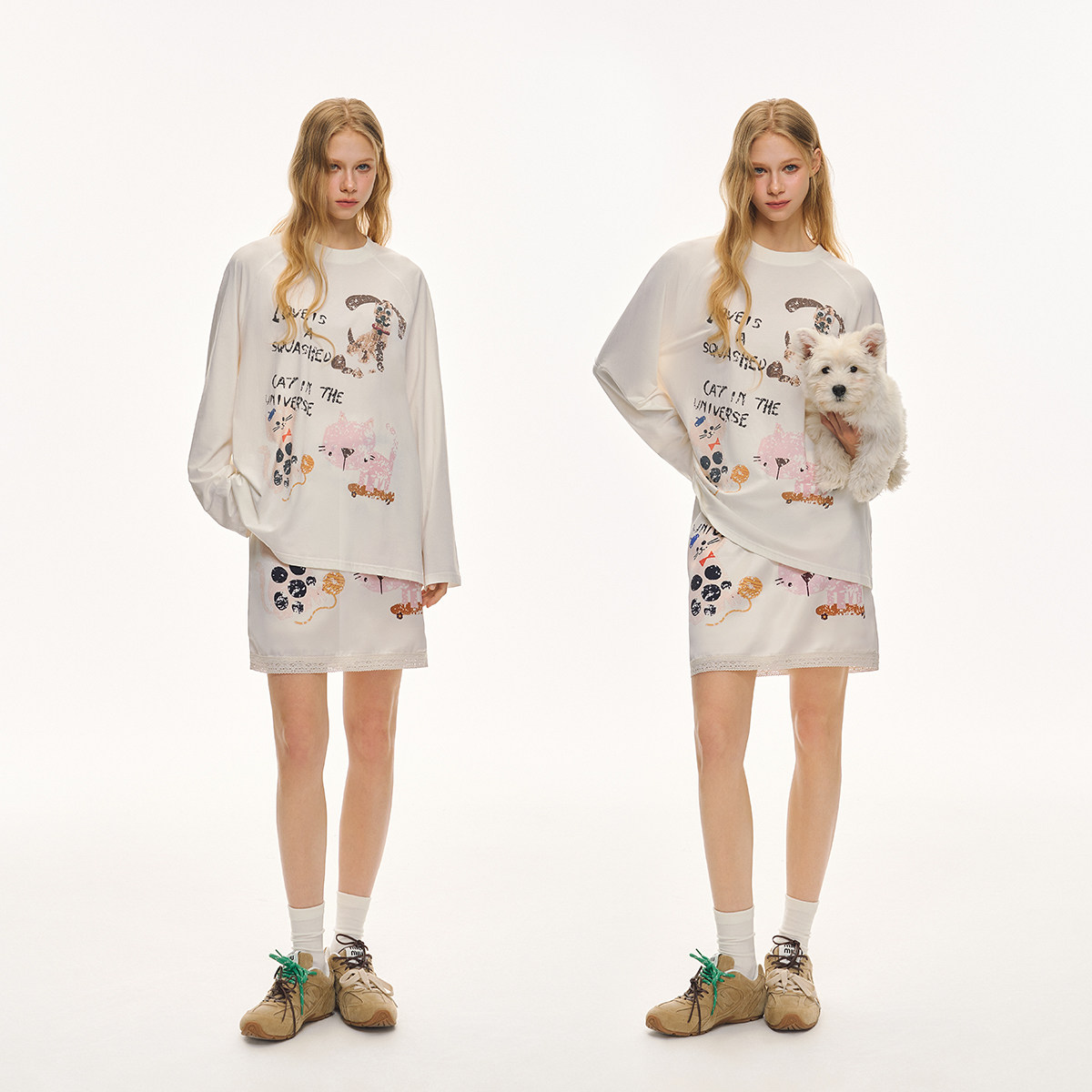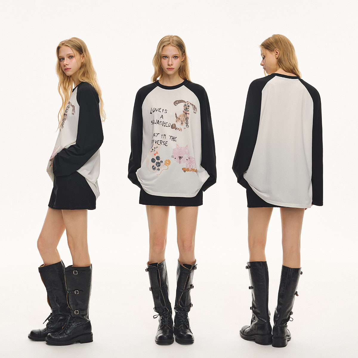 CLIMAX VISION轻薄干爽手绘涂鸦印花撞色插肩长袖T恤打底衫女款