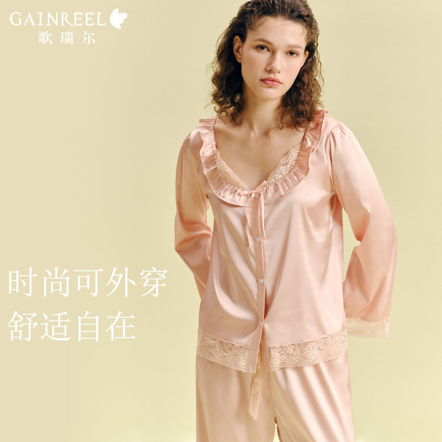 歌瑞尔2026年新款裸感亲肤睡衣女冰丝感透气长袖女士家居服套装