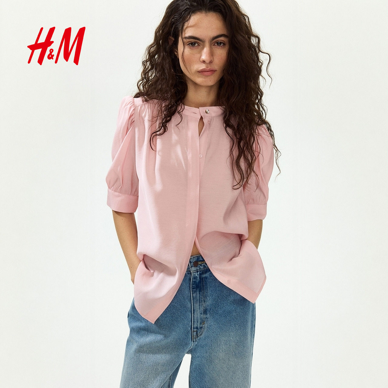 HM女装衬衫2026春季新款灯笼袖衬衫时尚泡泡袖上衣潮流衫1330168