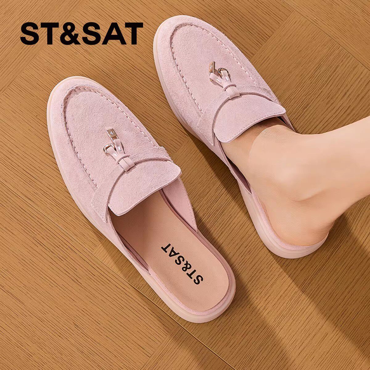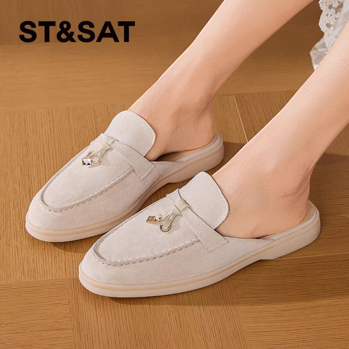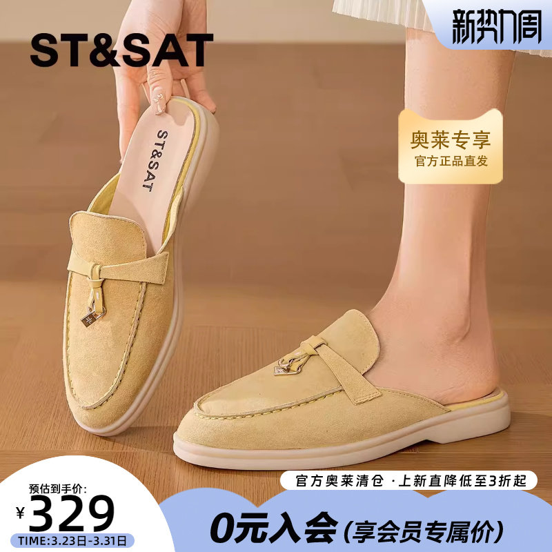星期六羊皮革穆勒鞋懒人一脚蹬复古休闲包头拖女拖外穿凉拖鞋