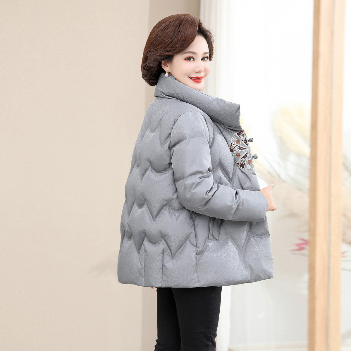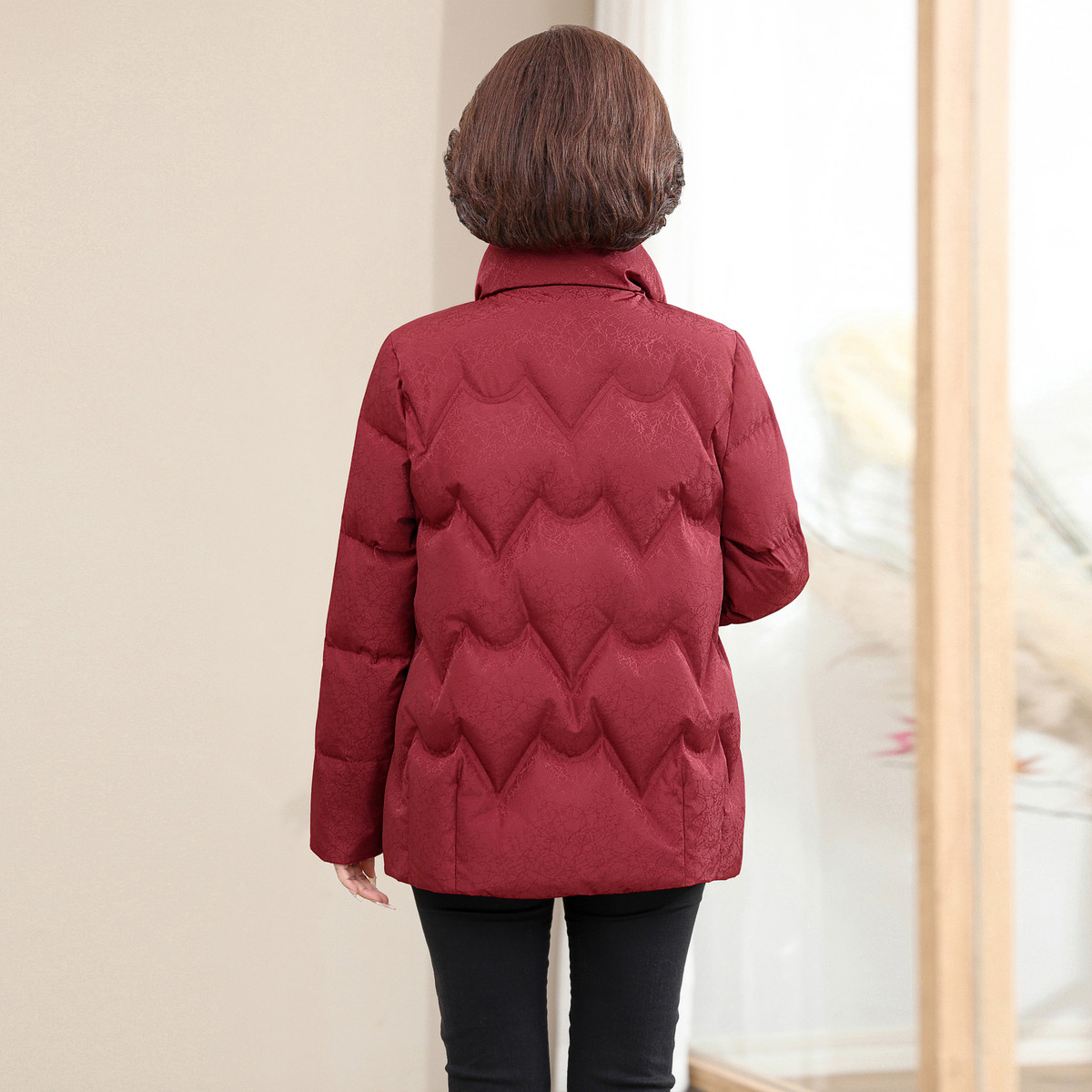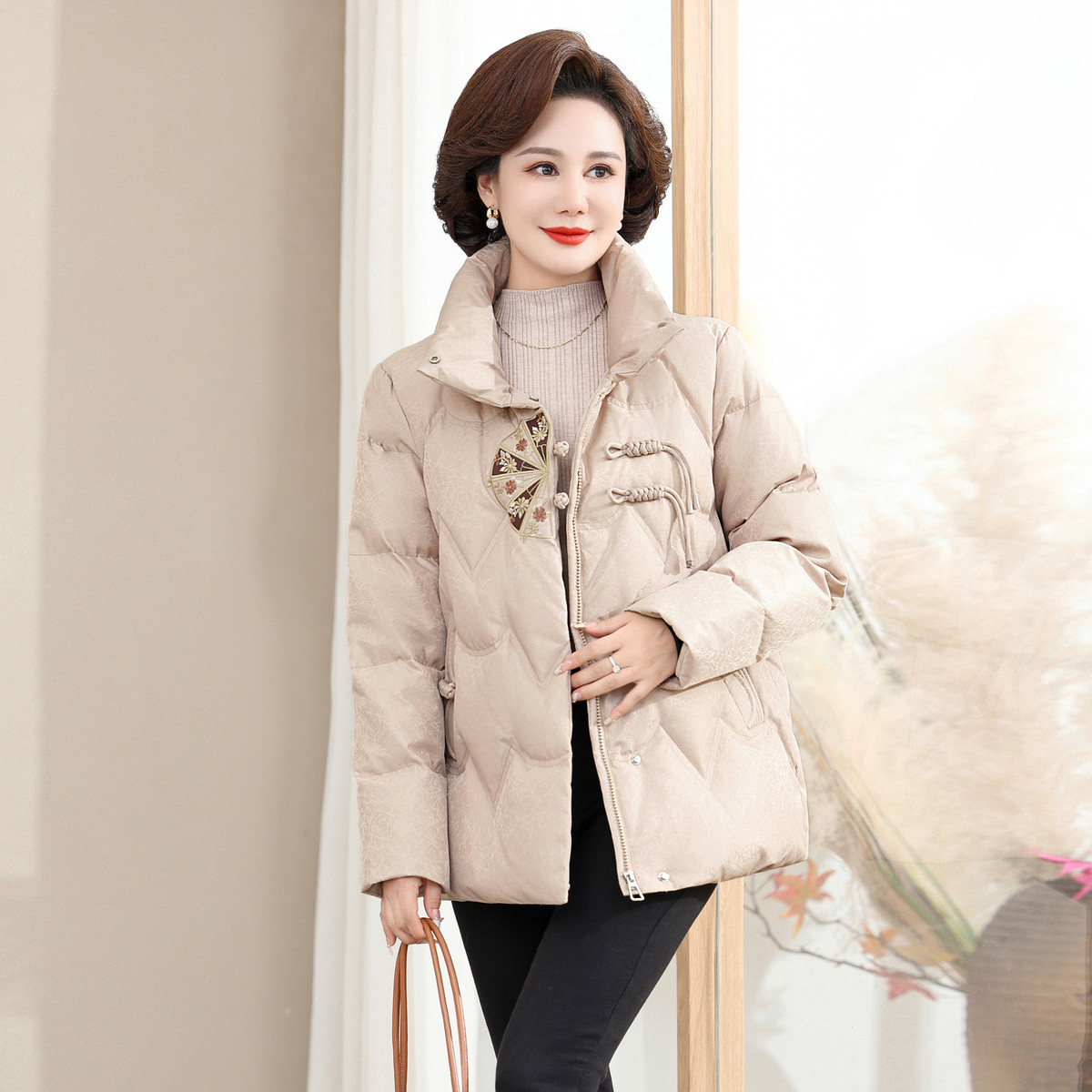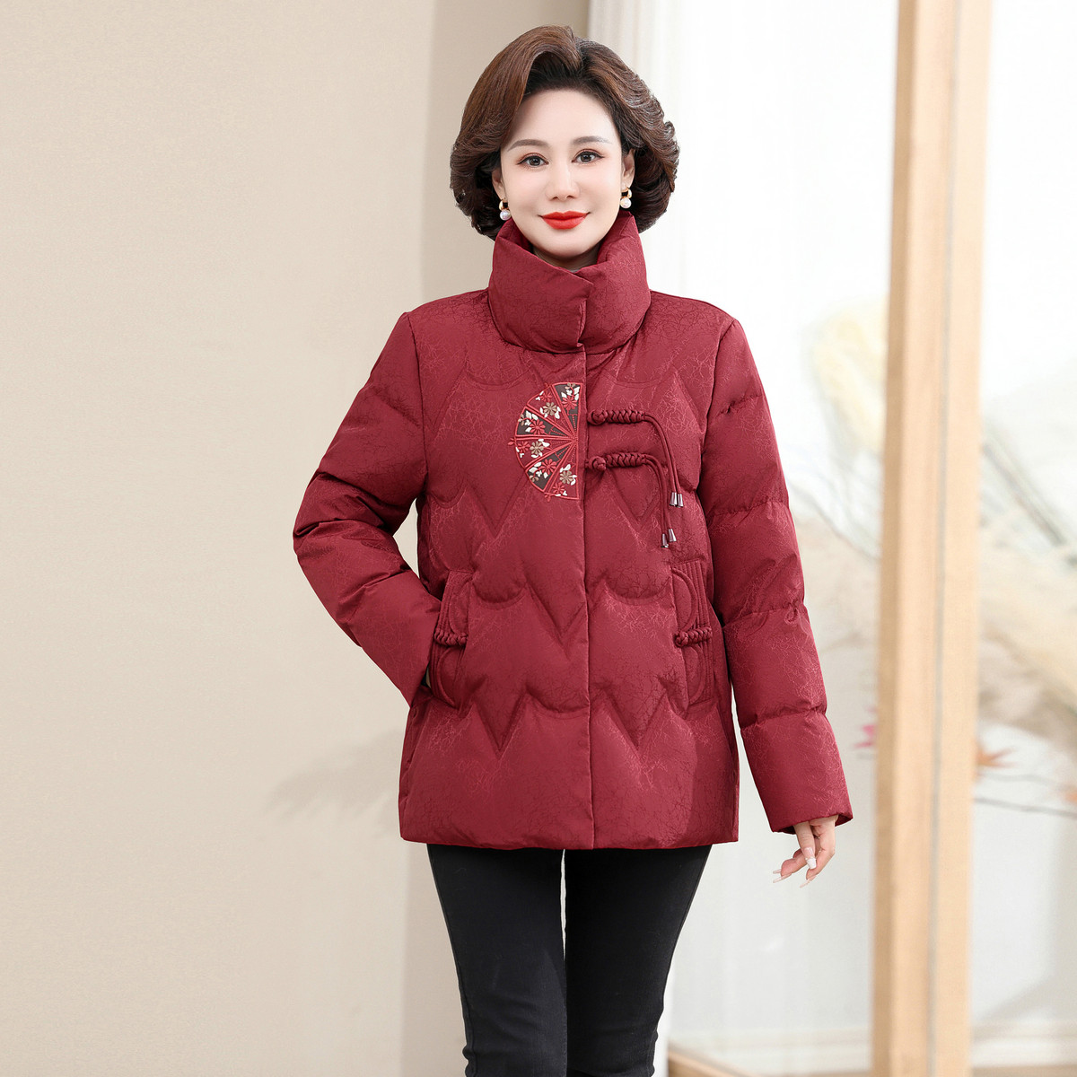 雪中飞2025冬新款女士妈妈款短款立领羽绒服新中式保暖花纹时尚