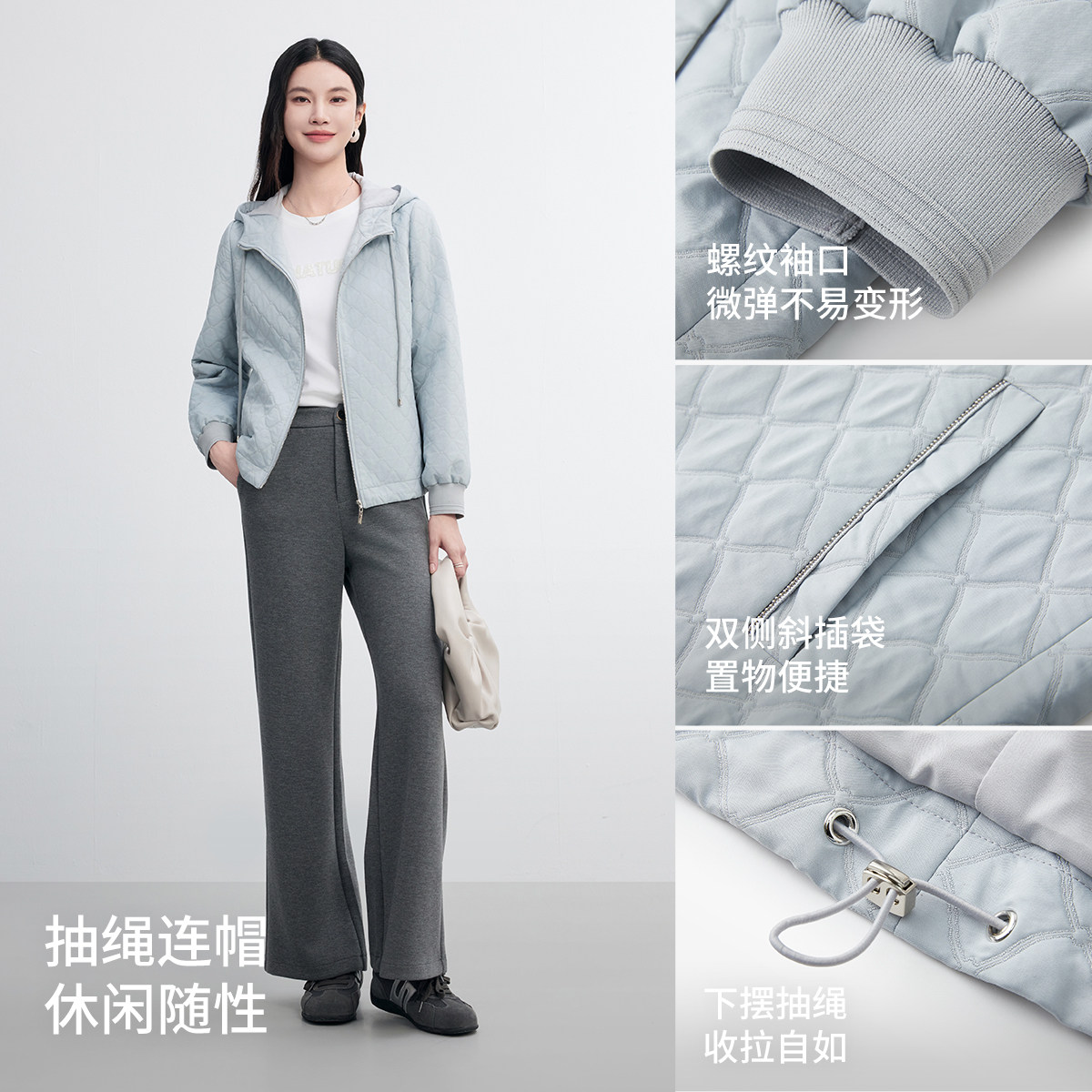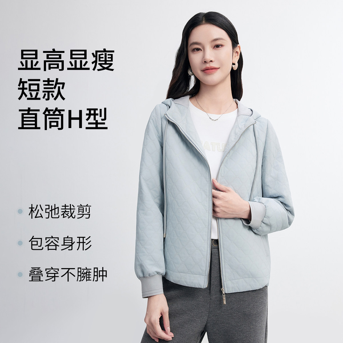 FINITY菲妮迪短外套2026春新款浅蓝色连帽菱形设计感短款上衣女装