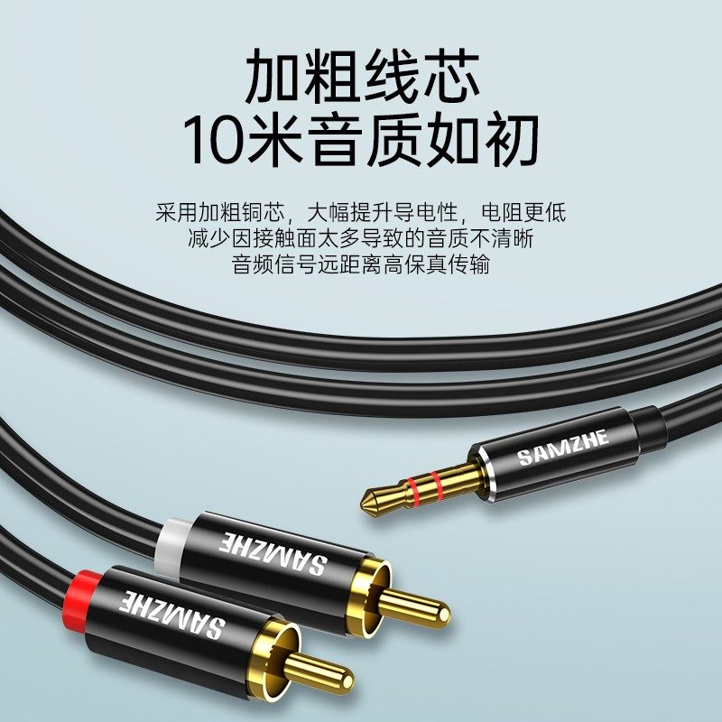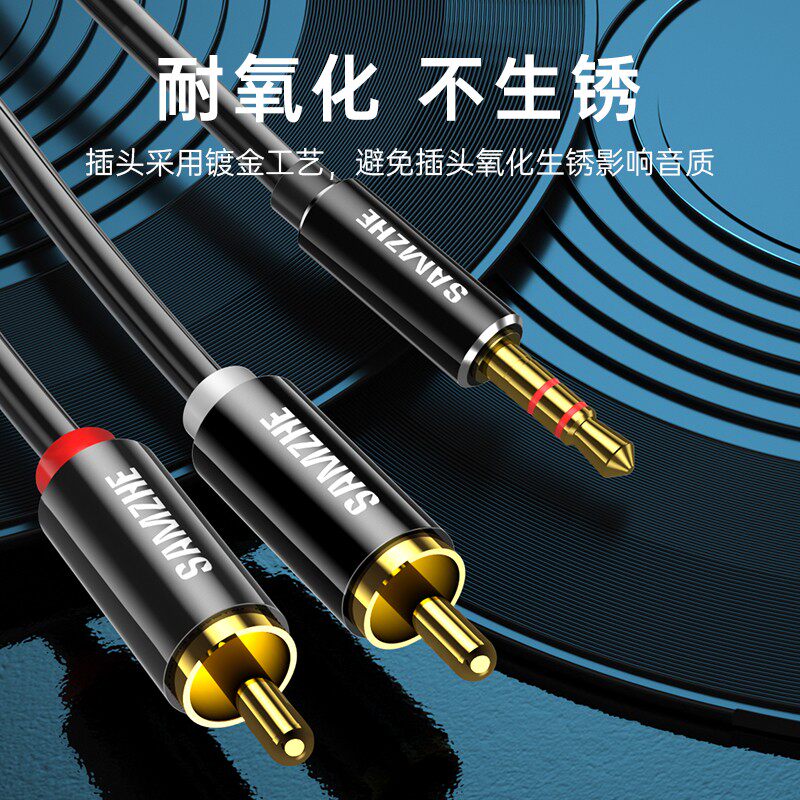 山泽音频线一分二音响连接线3.5mm转莲花红白双插头 RCA手机电脑电视箱功放低音炮aux专用转换线输出入一拖二