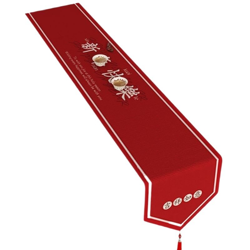 结婚餐桌桌旗红色长条装饰桌布布艺新年电视柜茶几防水盖布感直发