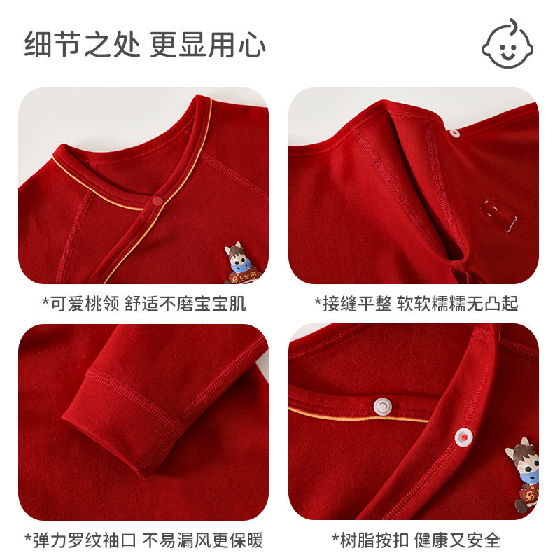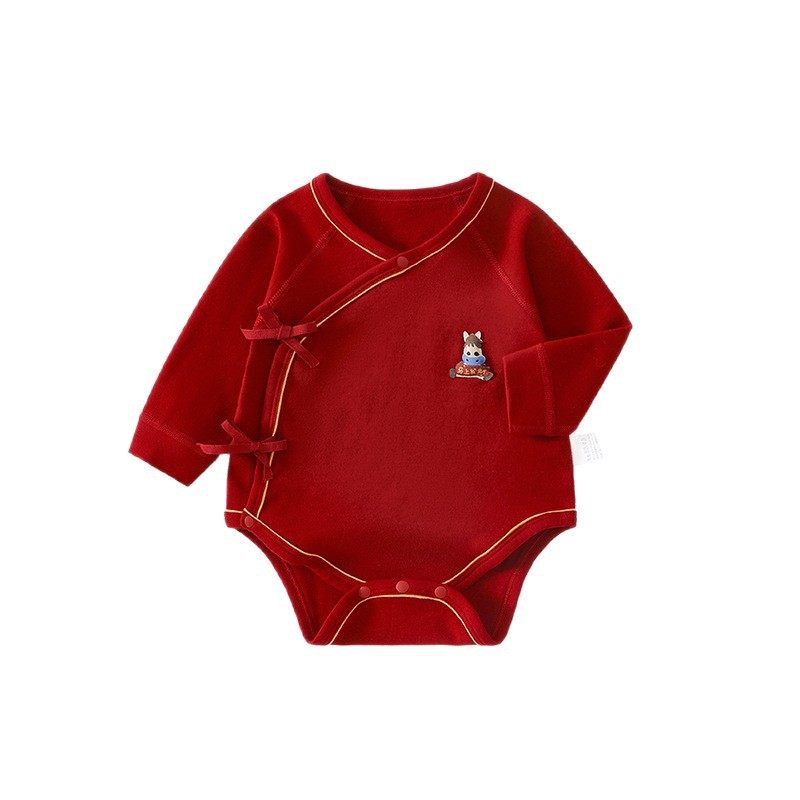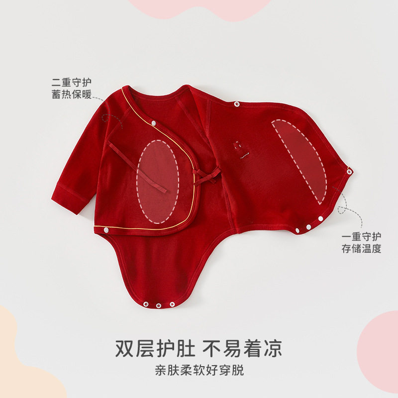 婧麒新生婴儿衣服冬季连体衣红色初生宝宝爬爬服四季款婴幼儿哈衣