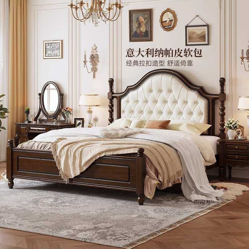 美式乡村复古实木床1.8m主卧软包双人床家用老钱简约1.5m储物婚床