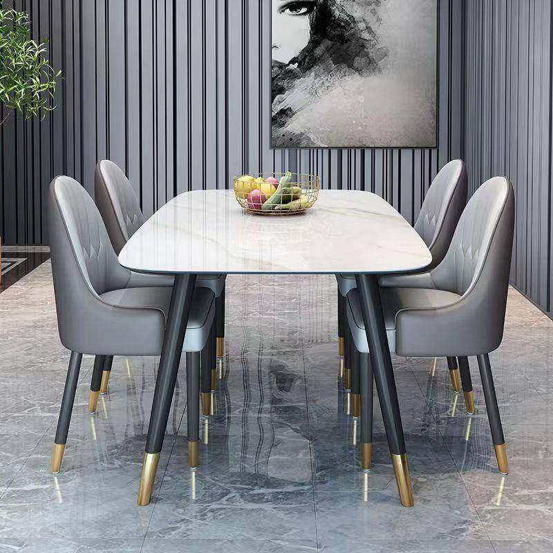 岩板餐桌小户型家用现代简约轻奢意式大理石客厅组合长方形饭桌