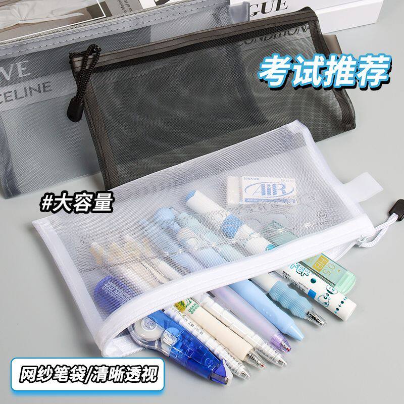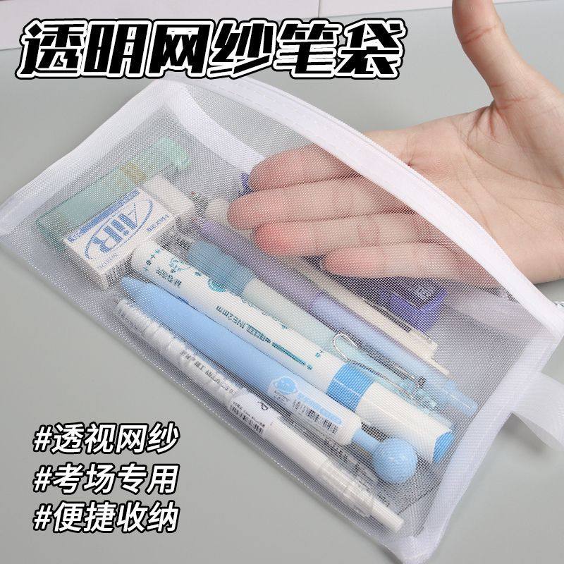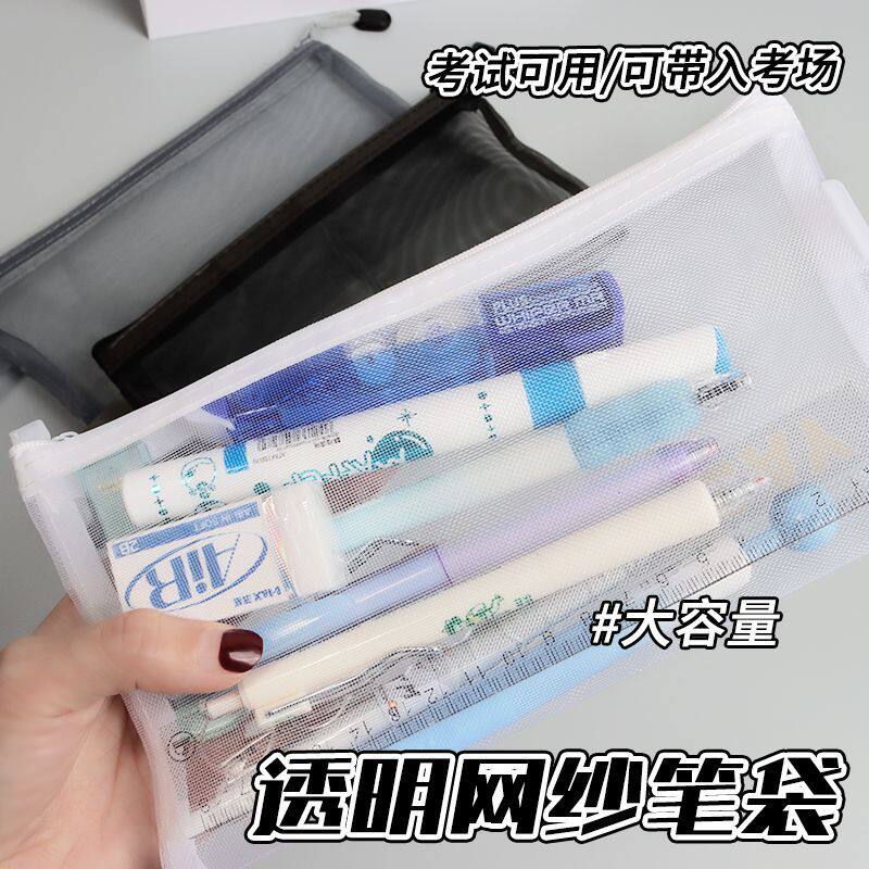 透明笔袋简约文具便携网纱收纳袋学生大容量韩系考试专用铅笔