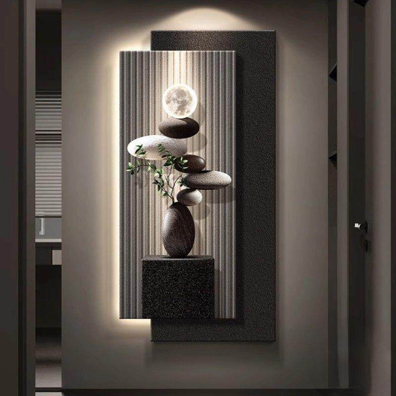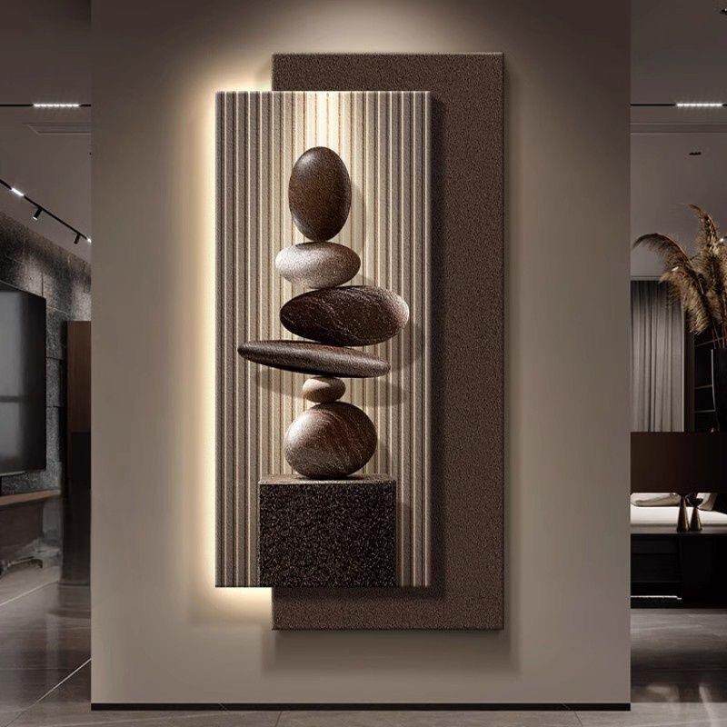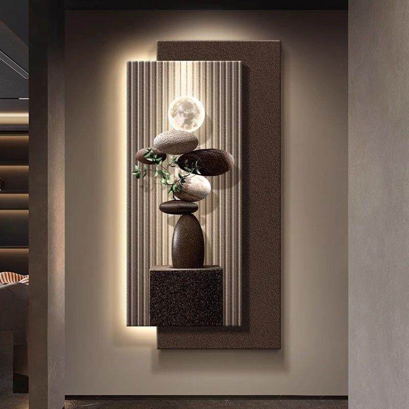 石来运转玄关装饰画现代轻奢寓意好挂画高级感入户正对门墙壁灯画