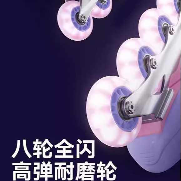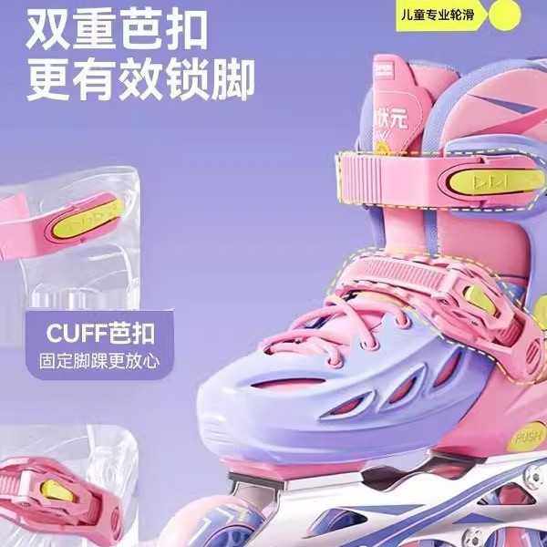 平花鞋轮滑鞋小状元双芭扣发光初学单排直排轮一体支架溜冰鞋