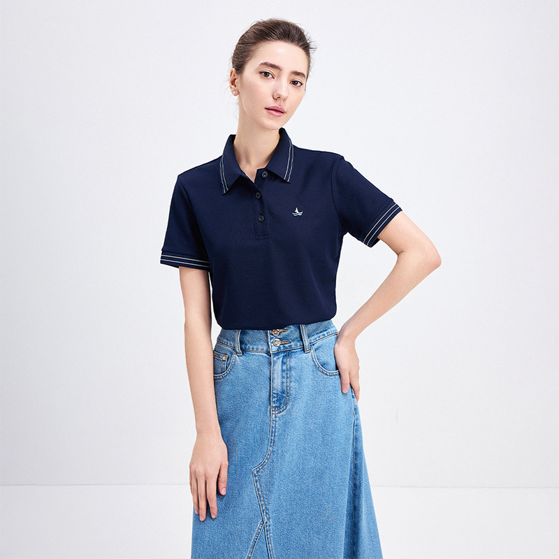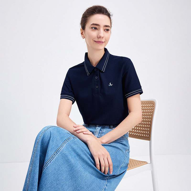 Navigare意大利小帆船夏季POLO衫翻领上衣女士休闲短袖T恤