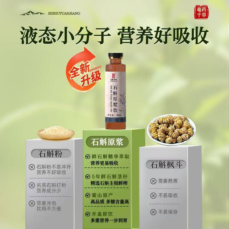 石斛原浆饮霍山石斛肠胃消化不适五年浓缩液态液瓶装正品鲜榨植物