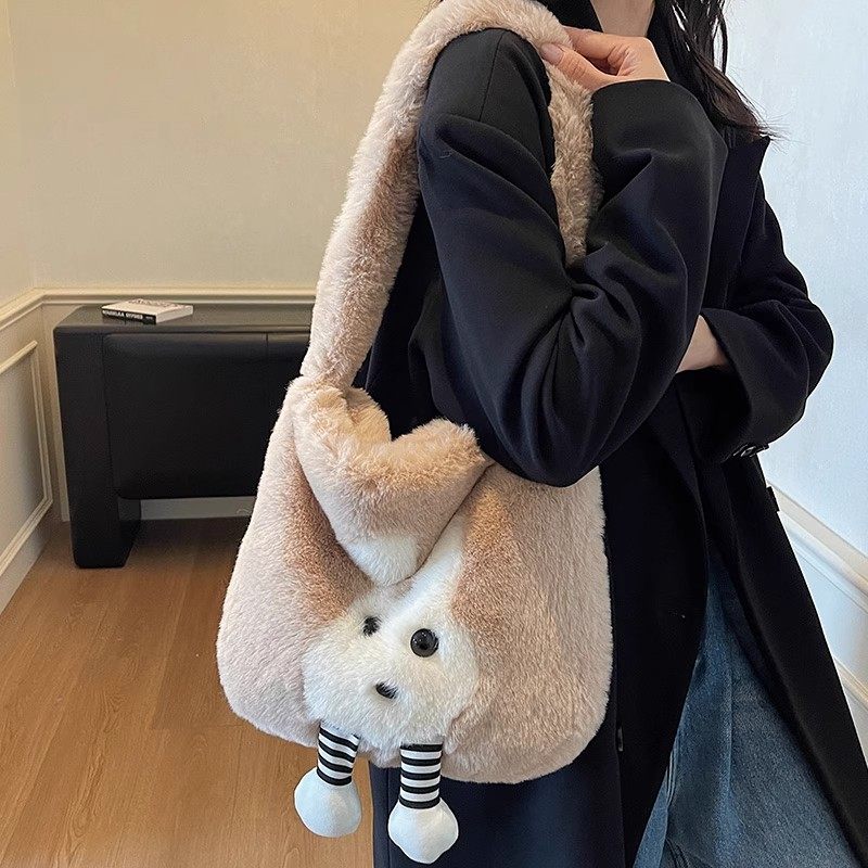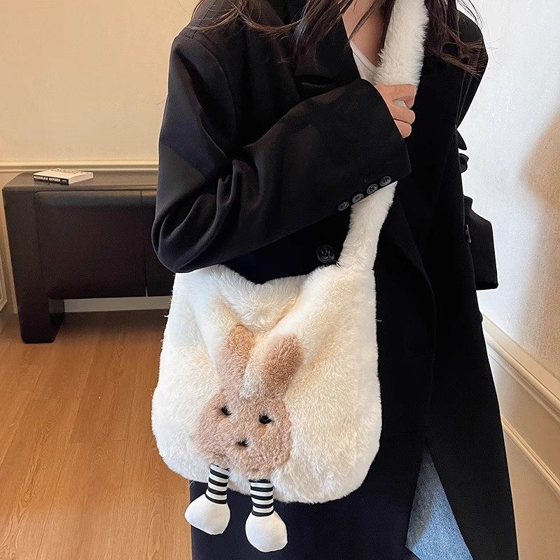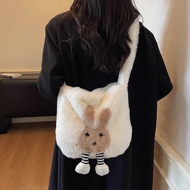 秋冬可爱兔子毛绒包包女2025新款时尚毛茸茸斜挎包百搭ins托特包