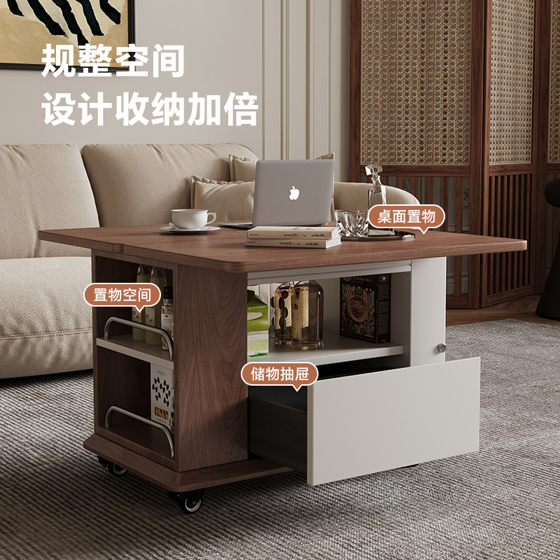 可推拉茶几可储物别墅客厅家用大小户型现代简约移动茶几小推车