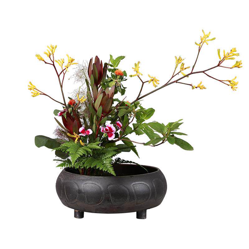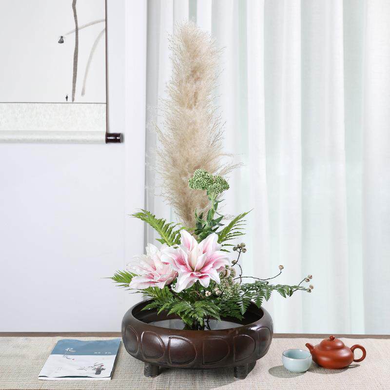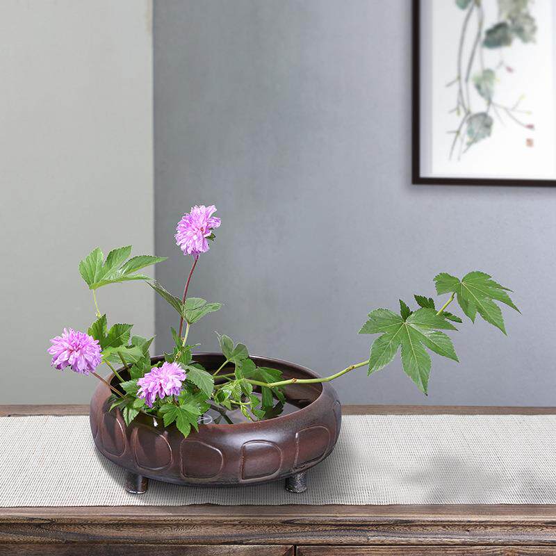 剑山花器中华缸复古花盆插花新中式四脚古纹盘