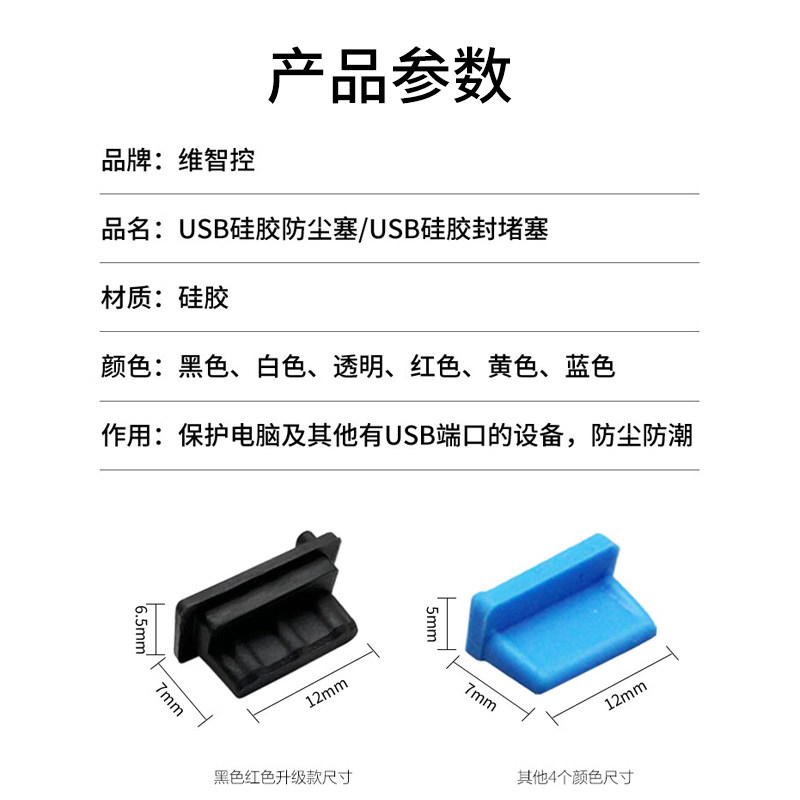 维智控USB硅胶防尘塞u口封堵移动电源充电宝汽车接口usb通用堵盖